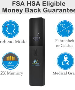 Medical Grade Forehead Thermometer, New Amplim Non-Contact/Touchless Digital IR Infrared Thermometer, FSA HSA Eligible, Hospital Clinical Proven for Adults, Babies, Kids – Black