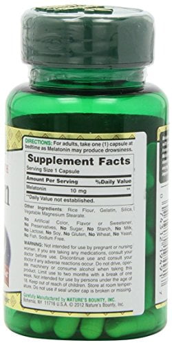 Nature’s Bounty Maximum Strength Melatonin 10mg, 120 Capsules (2 X 60 Count Bottles)