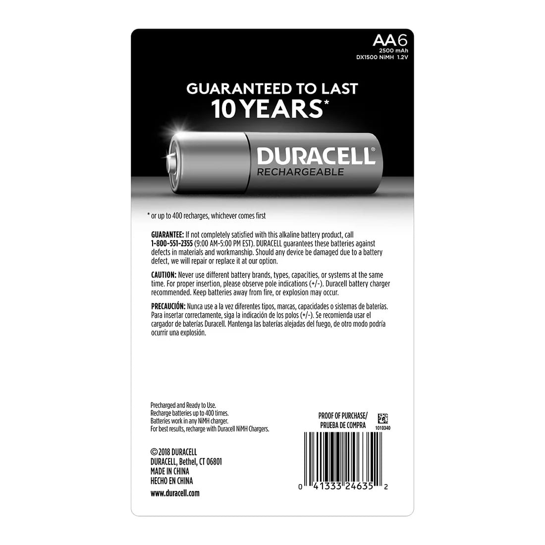 Duracell Rechargeable AA Pre-Charged Batteries, 6 ct