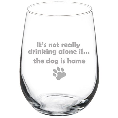 17 oz Stemless Wine Glass Funny It’s not really drinking alone if the dog is home