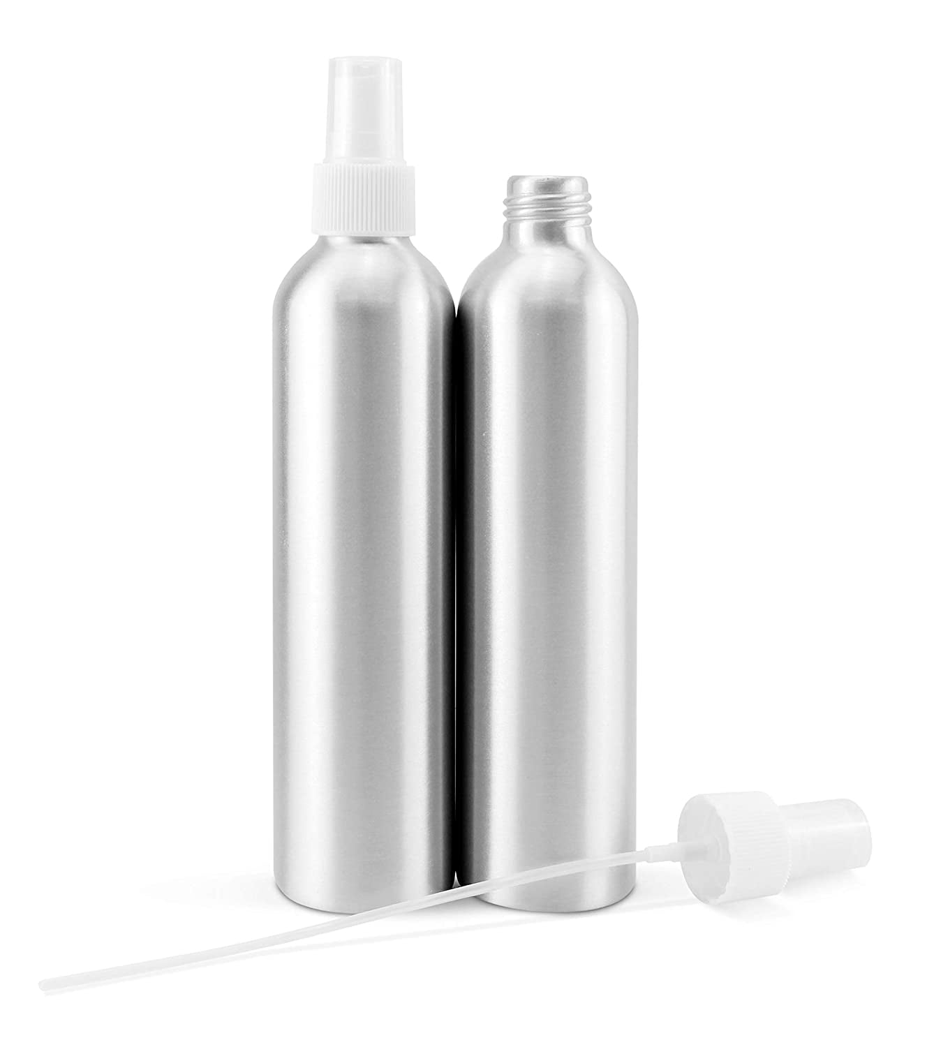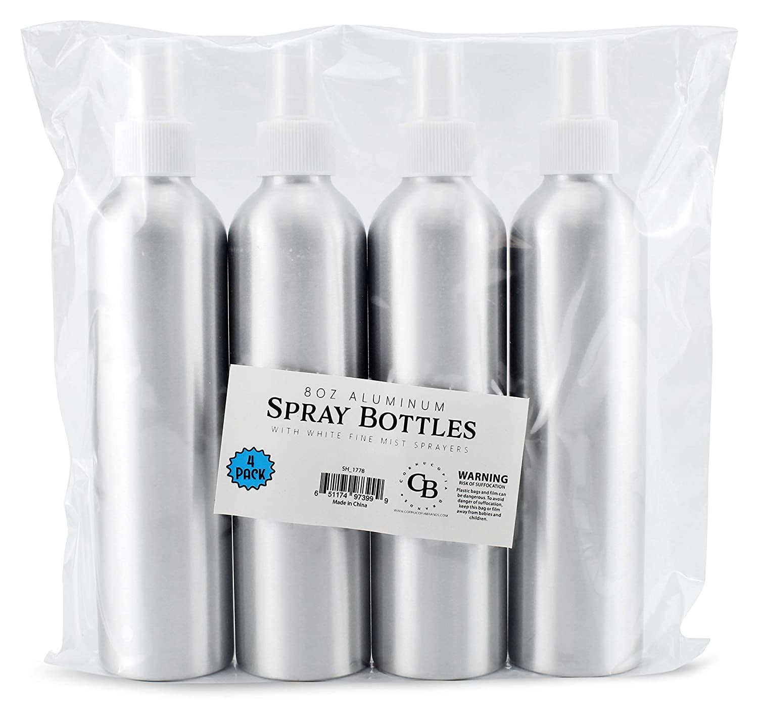 8 Ounce Aluminum Fine Mist Spray Bottles w/ Atomizers (4-Pack, w/White Caps; 8oz)