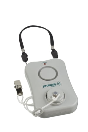 Arrowhead Healthcare ProTech Alarm System – P-800100EA – 1 Each / EachManufacturer #P-800100 Brand ProTechâ„¢ Manufacturer Arrowhead Healthcare Application Alarm System Color Cream Power Source Battery Type Pull Cord UNSPSC Code 42143608 Features Built to withstand the rigors of institutional useUnique tone differentiates from other alarmsMonitor is always on, making it impossible for staff to forgetLow battery indicator is located on the front of the monitor for easy visibilityNylon strap easily hangs from the push handle of a wheelchairSnap-to-close battery cover also has a screw for increased tamper resistance1 Each / Each