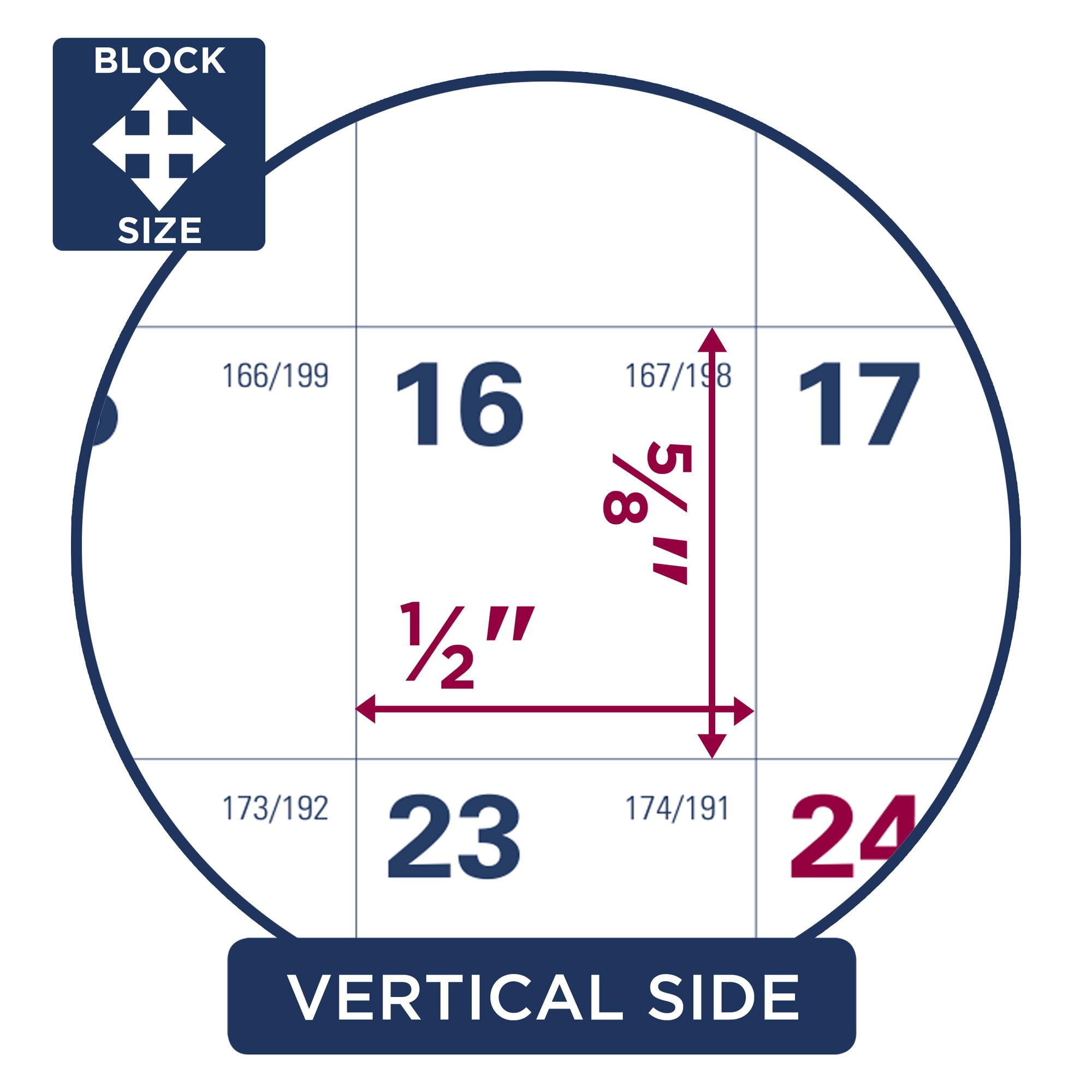- Each month has unruled daily blocks. Calendar measures 12"" x 16"". Daily blocks measure 9/16"" x 5/8"" on hoizontal side and 1/2"" x 5/8"" on vertical side.""