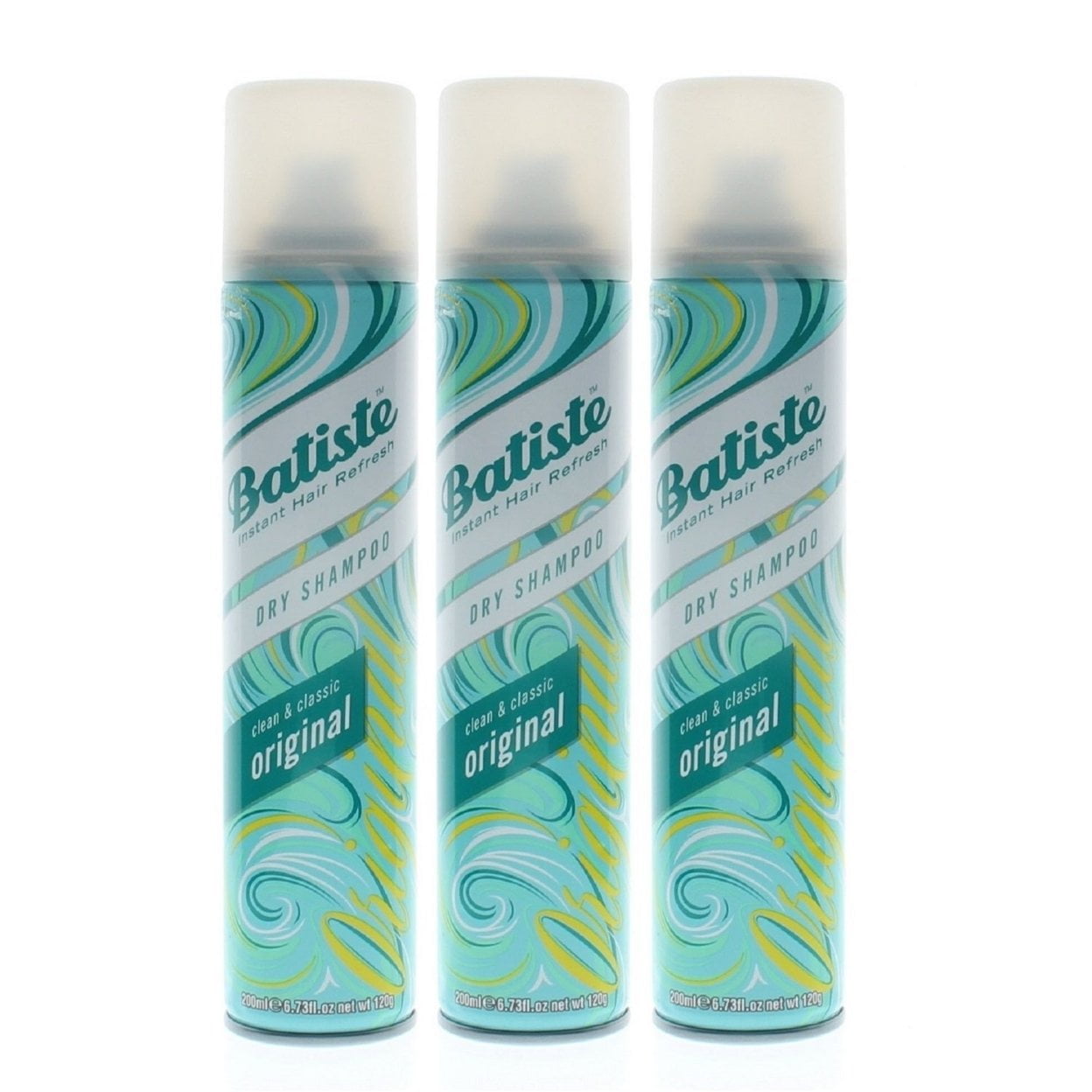 Enjoy a clean and classic scent with subtle hints of powder, lavender, and musk Use between washes to instantly refresh your hair, no water required Waterless formula absorbs dirt and grease to revitalize dull and lifeless hairBatiste Instant Hair Refresh Dry Shampoo Clean & Classic Original 6.73oz / 200ml (3-Pack)