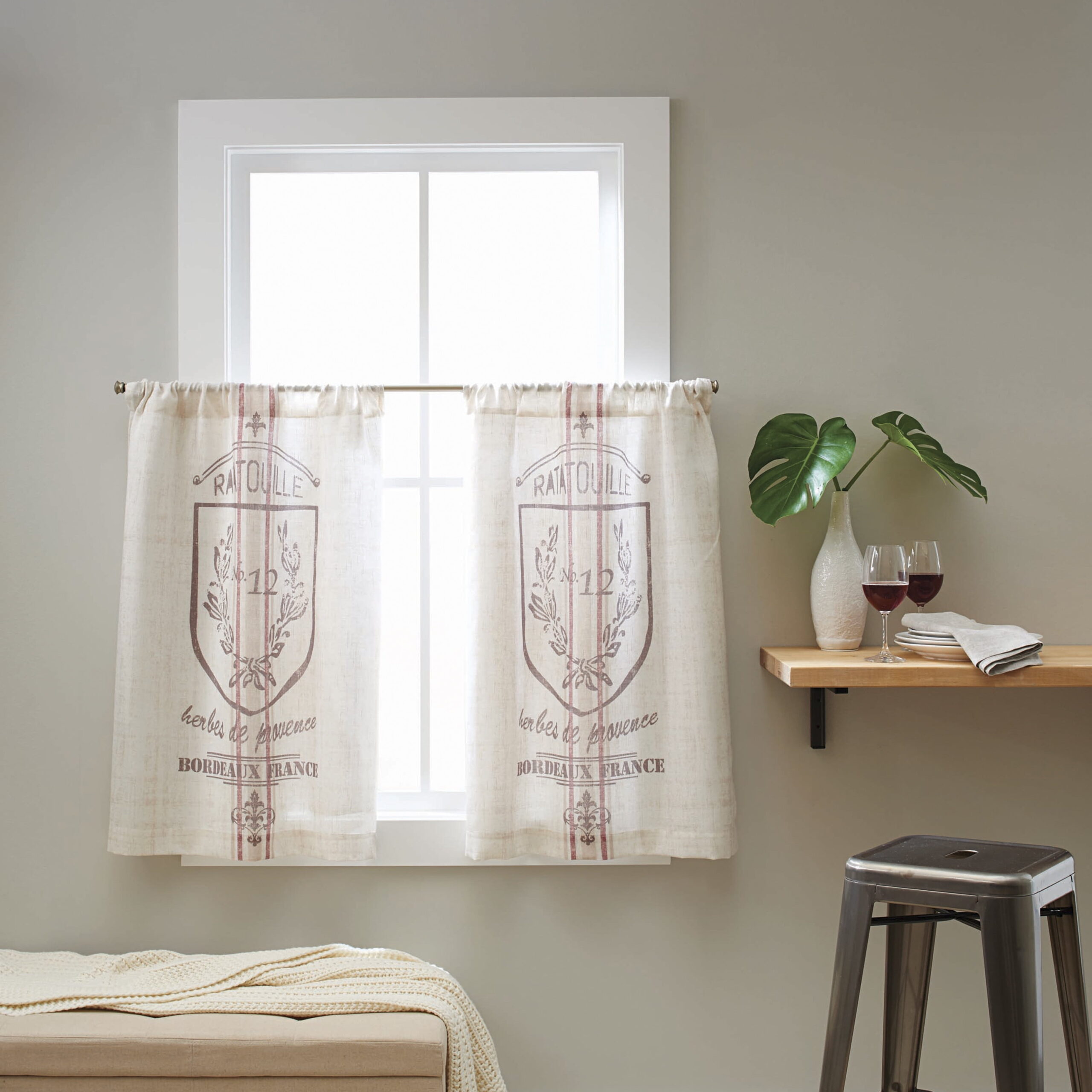 Add a little French Country to your kitchen with the Better Homes & Gardens Herbs de Provence – Rose tier pair French-inspired design. Each tier curtain measures 30 in. x 36 in., finished width of the pair measures 60 in. x 36 in.. The rod pocket for tiers measures 3 inches for easy shirring, which makes these pieces simple to hang on a decorative or traditional window rod (not included). This Better Homes & Gardens Herbs de Provence brings timeless French style to your kitchen. It offers a simple way to update a kitchen, dining area, and other windows of a compatible size. The Better Homes & Garden tiers are machine wash and dry for easy care, cleaning, and cool ironing if needed. Fabric content is 90% polyester and 10% linen. Complete the set with a Better Homes & Gardens Herbs de Provence decorative valance (sold separately). The window valance lets you trim the frame which can help control sunlight coming into the room.