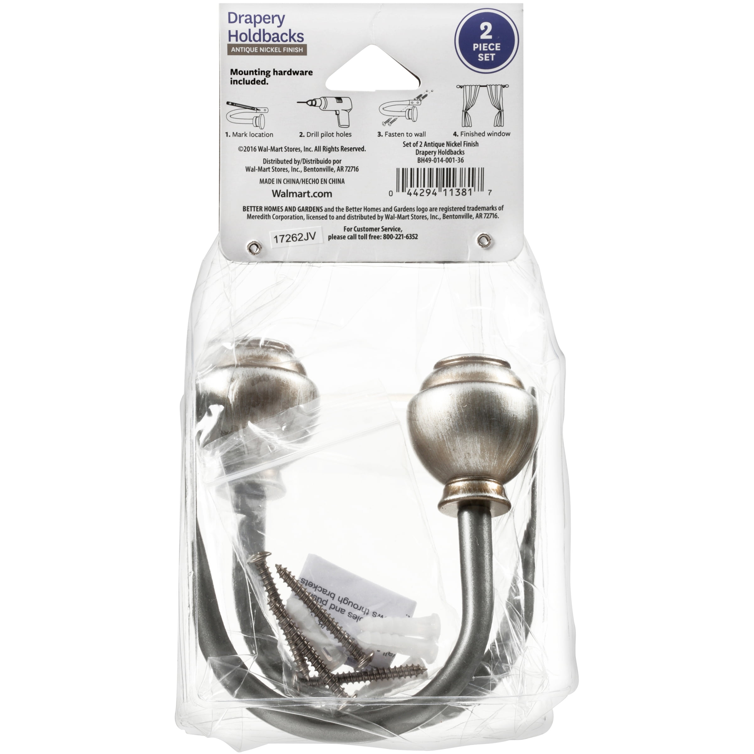 Better Homes & Gardens Drapery Holdbacks, Antique Nickel, 2 Pack: