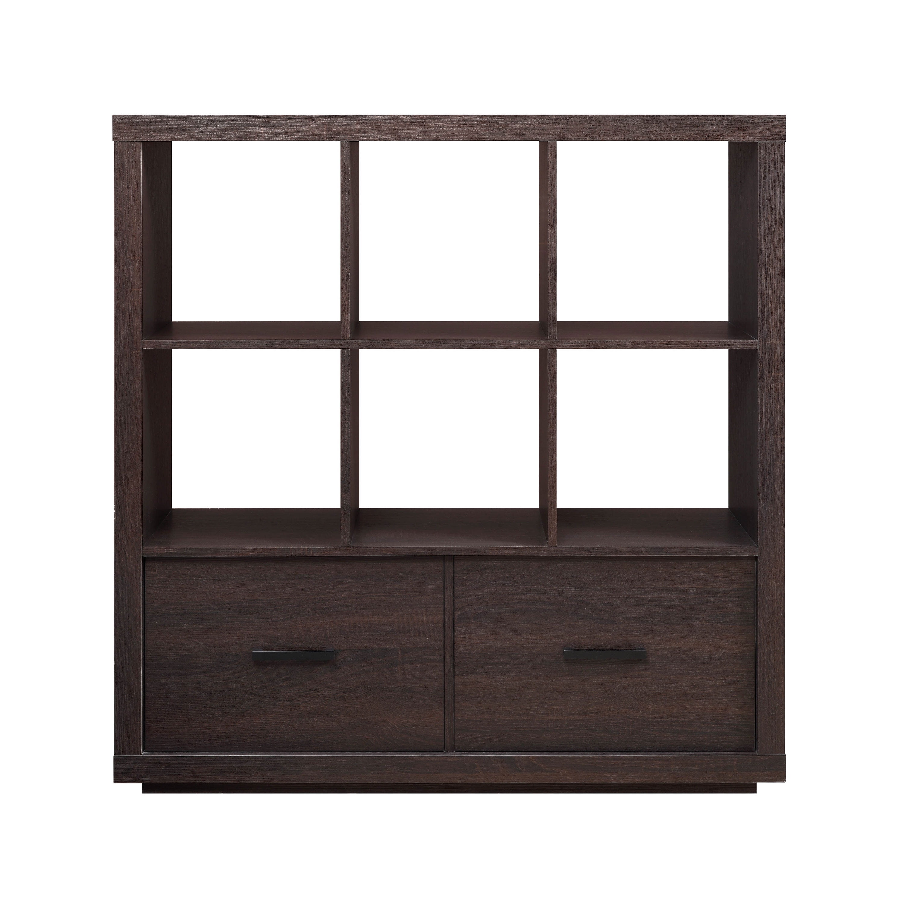Our Better Homes & Gardens Steele display hutch is the perfect addition to any space in your home. Stylish and contemporary shelves feature clean lines and a rich finish that will complement almost any decor. The open cube structure and two large storage drawers make it the ideal solution for all of your storage and display needs. Metal hardware with a black powder-coated finish adds a polished look to the bookshelves to brighten any room. Store any items you want unseen in the spacious drawers that feature drawer glides for easy opening and closing capabilities. You can maximize space in your home and add style to one. This storage hutch is perfect for storing your favorite books, cozy blankets and displaying your best photos and decor.