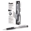 Velocity Pencil features a sliding sleeve over the tip to prevent lead from breaking, a top advance lead mechanism, and a sleek barrel. Smooth opaque rubber grip provides comfort and control while writing. Mechanical pencil has a high quality eraser, conical retractable lead and three tough leads. Eraser end with a cap keeps eraser clean. Refillable.