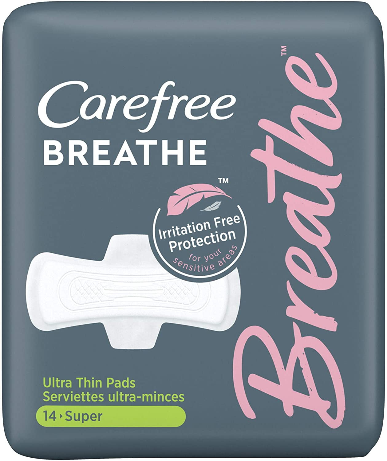 Carefree Breathe Ultra Thin Super Pads with Wings, 14 Count, 2 Pack;UPC:078300082156Carefree Breathe Ultra Thin Super Pads with Wings, 14 Count, 2 Pack