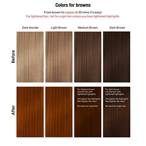 - Maintain & Refresh copper tones and all coppers, copper reds and brown hair.