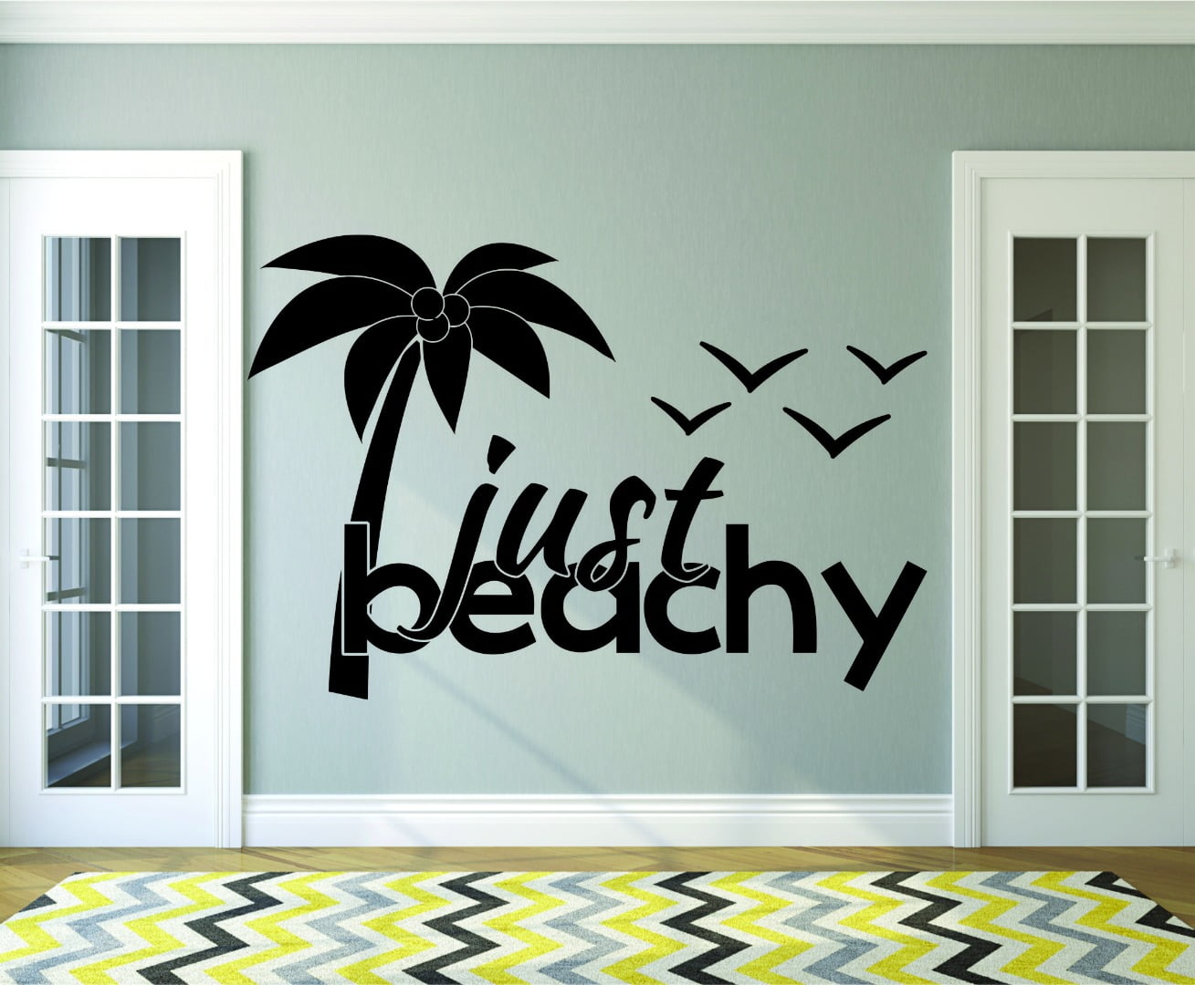 Custom Wall Decal Sticker : Just Beachy Palm Tree Birds Vaction Life Quote 12×18 Inches