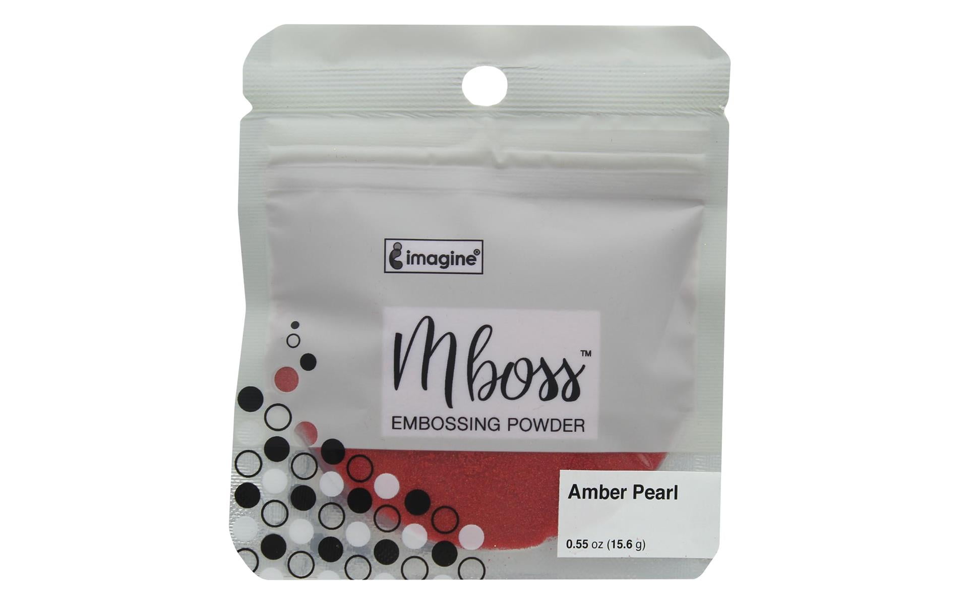 Imagine Crafts Mboss Powder features high-quality embossing powder in a functional wide mouth zip close standing package that makes returning powder easy Creates shiny raised texture Use a heat tool from below for the best melt 55oz Amber PearlEB-000-035 IMAGINE CRAFTS MBOSS POWDER 55OZ AMBER PEARL