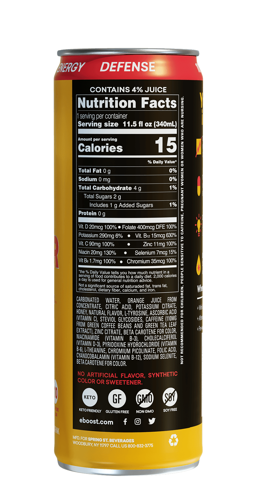 EBOOST SUPER FUEL Natural Energy and Vitamins, Orange Mango, 12 Pack