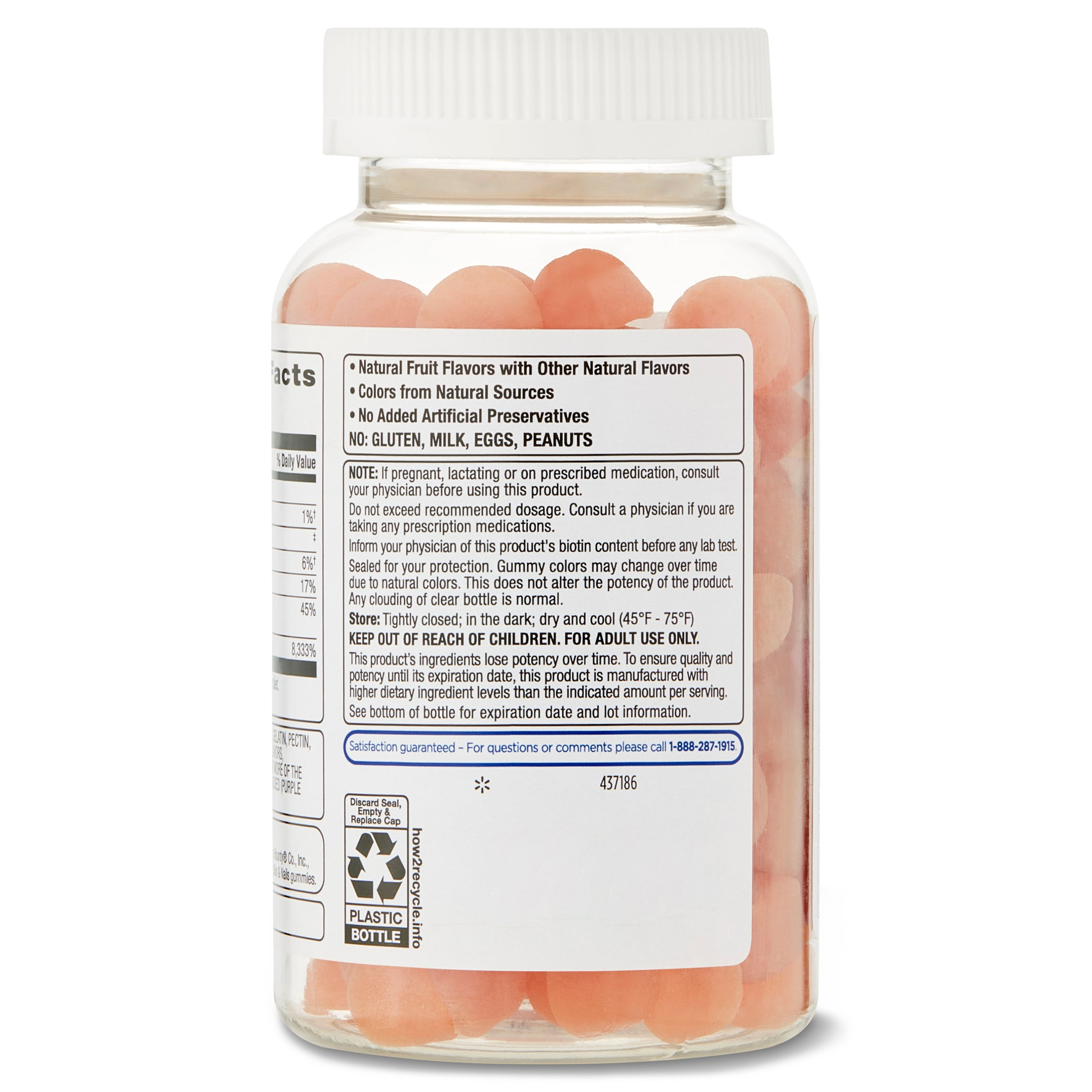 Equate Hair, Skin and Nails Biotin Gummies are the simplest, best-tasting way to take Biotin. These delicious and easy to chew gummies make taking your daily Biotin a joy.