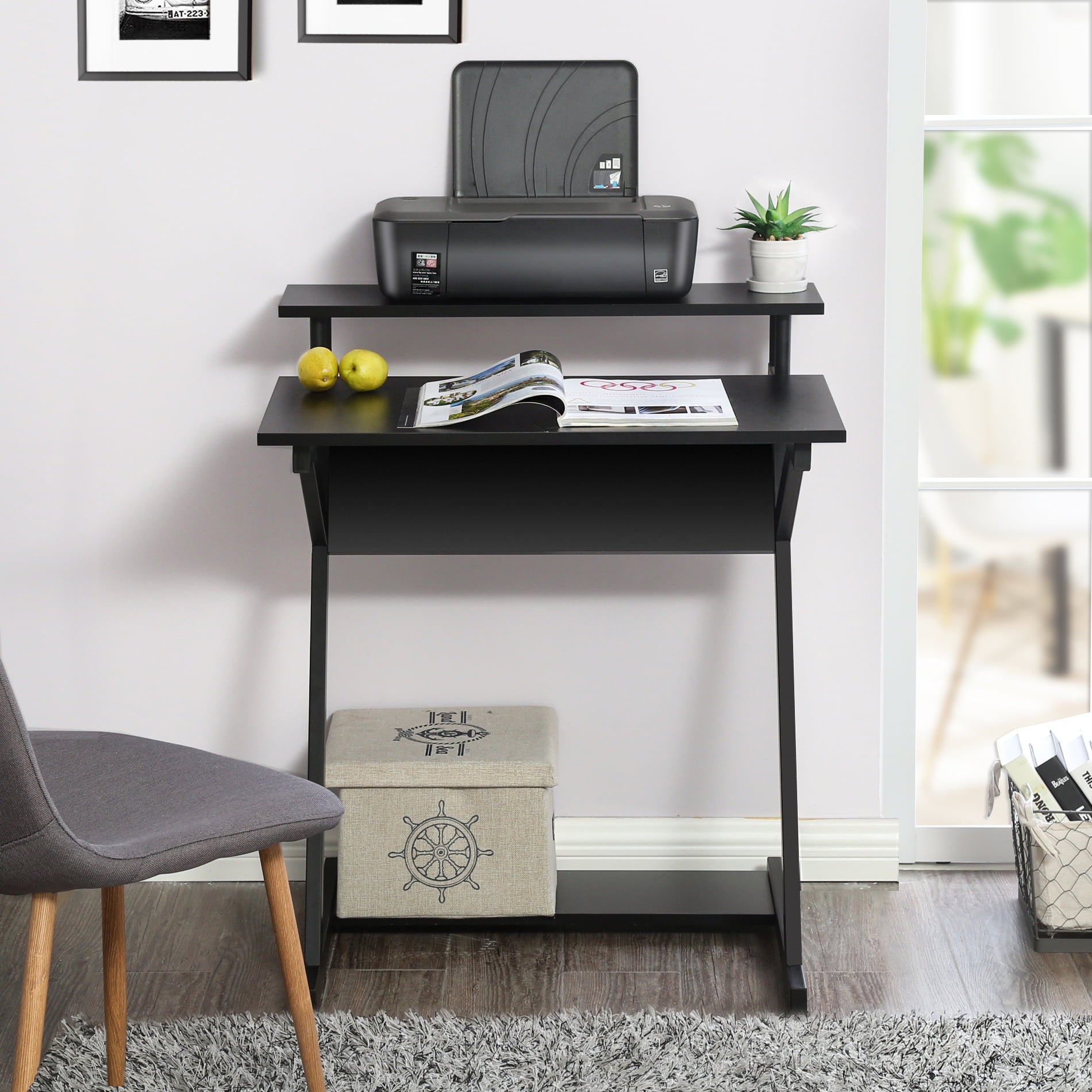 - 【MONITOR SHELF】This small computer desk equipped with an extra-level shelf. Weight capacity: 22 lbs. It is sturdy enough to hold your monitor.