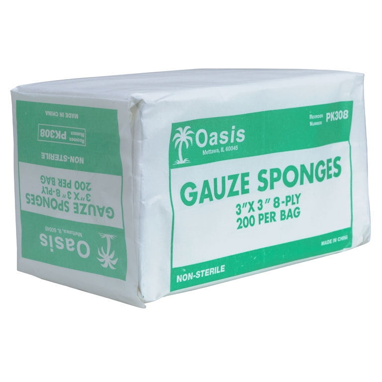 These cotton sponges are ideal for wound dressings, wound packing and general wound care. High quality, non-sterile gauze made of lint free cotton with no raw edges or loose threads. High absorbency, low linting, and costs less than leading brands … compare to any leading brand of medical sponge. >Great wound care supplies for daily use in veterinary clinics, medical offices and hospitals. These medical gauze sponges have no exposed raw edges that reduce lint. Highly absorbent Non-sterile 200 sponges per pkg Gauze sponges also available in 8-ply 2" x 2" (208C), 3" x 3" (308C), and 4" x 4" (408C) standard sizes.Gauze Sponges, 3 in. x 3 in., Non-Sterile, 8-Ply, 200/pkg