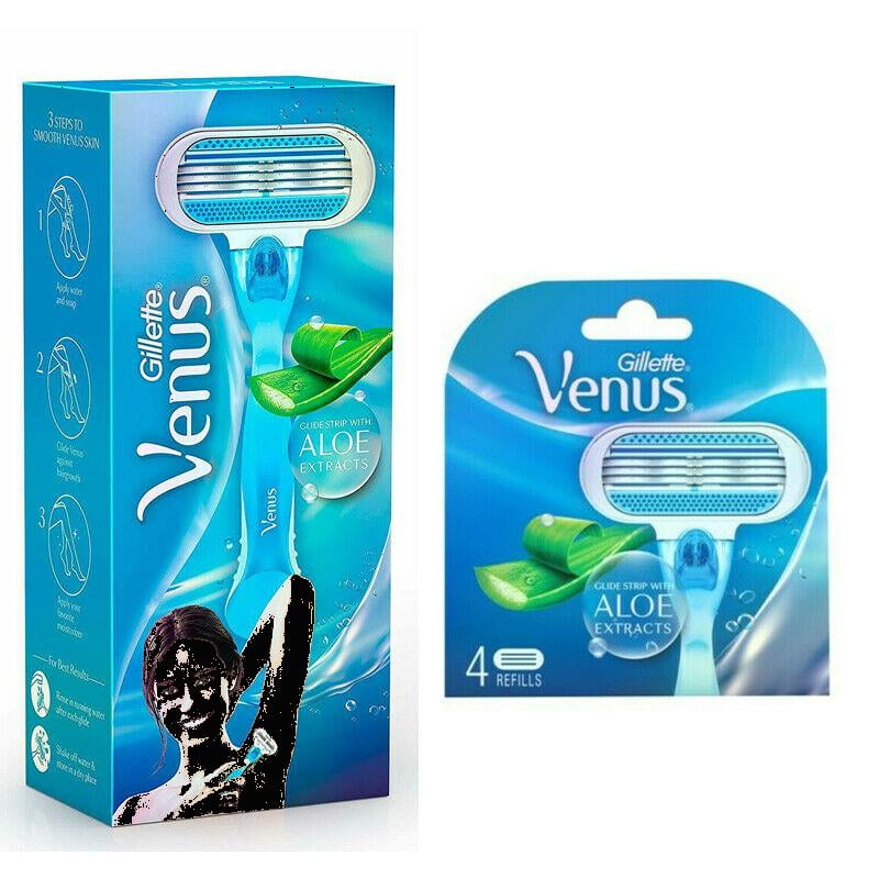 Venus razors are designed with a woman’s body in mind. From handles designed for a comfortable grip to pivoting heads that contour to curves, Venus razors are designed to help reveal touchable smooth skin.Gillette Venus Womens Razor Handle + 5 Refill Cartridges with Aloe Glide Strip