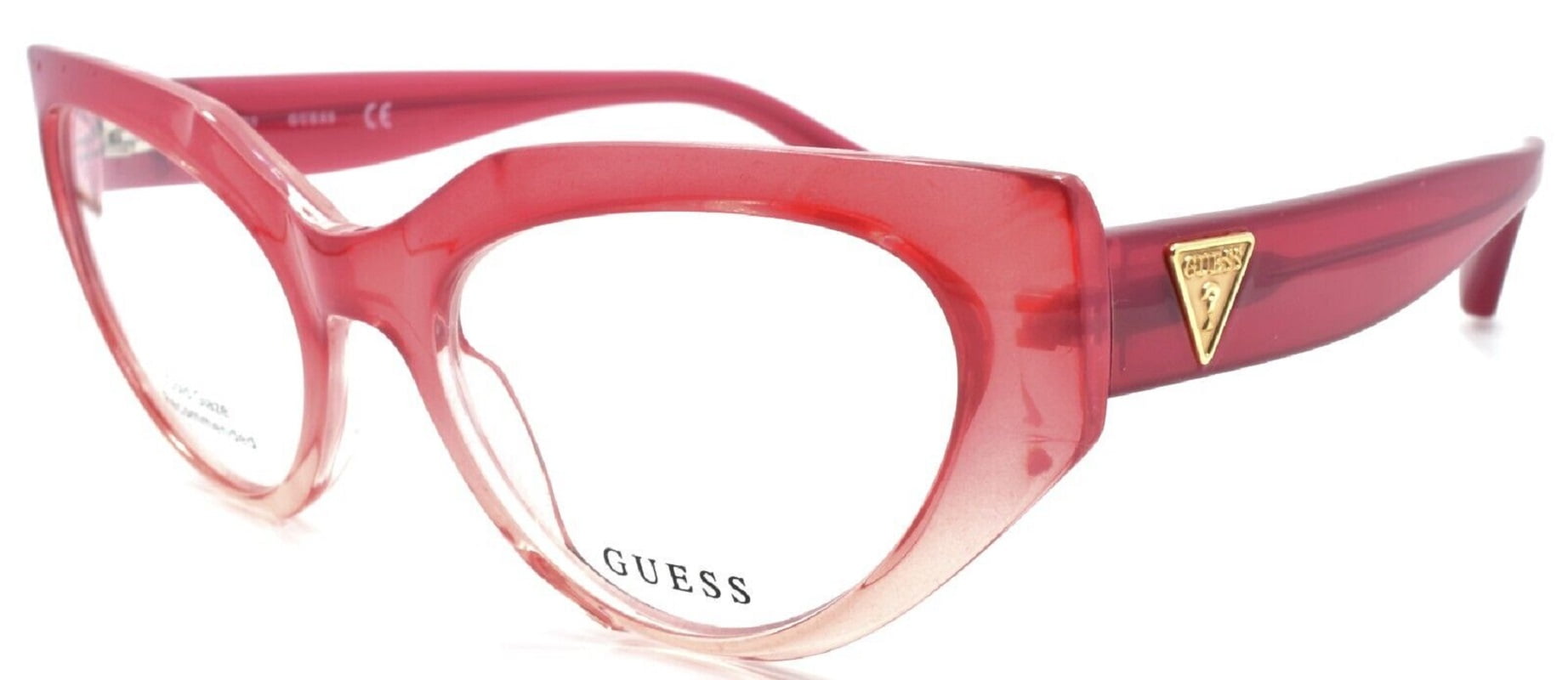 100% Authentic and Brand New Optical Frames Guess GU2853 Full Rim Cat-Eye Pink/Other Eyeglasses for Women, Size 55-20-135. These Cat-Eye prescription glasses are offered in Pink/Other tone and available with Demo Lenses. Created for contemporary and confident women who like elegant and refined accessories, these spectacles feature unmatched style, interesting finishing, and excellent color to match the sophisticated taste and outfit of any fashionable lady. This exclusive pair of Guess Eyeglasses is the best selection for wearers who prefer elegant style paired with exclusive design.