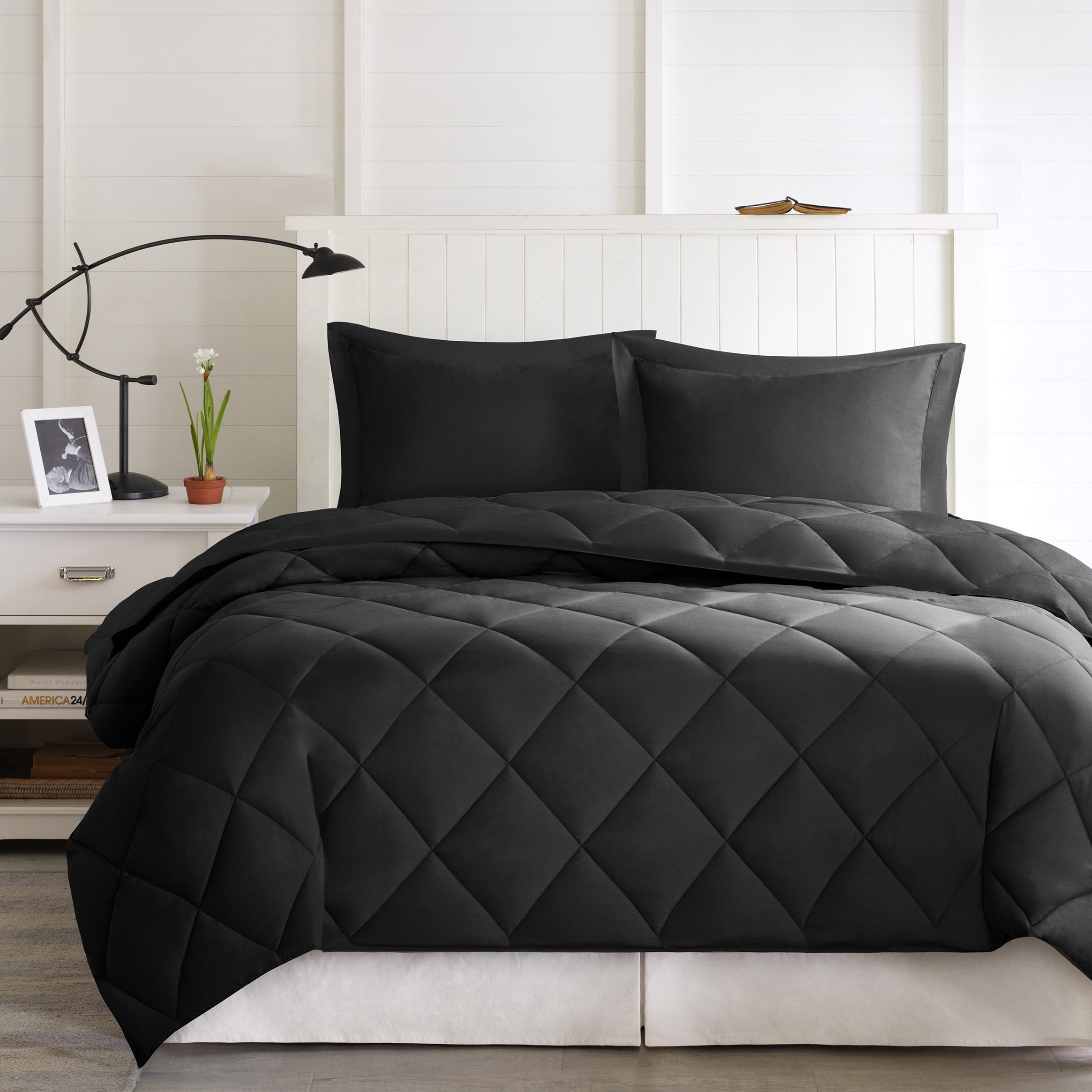 - Comforter: Soft Brushed Microfiber, Sewn Thru Diamond Quilting