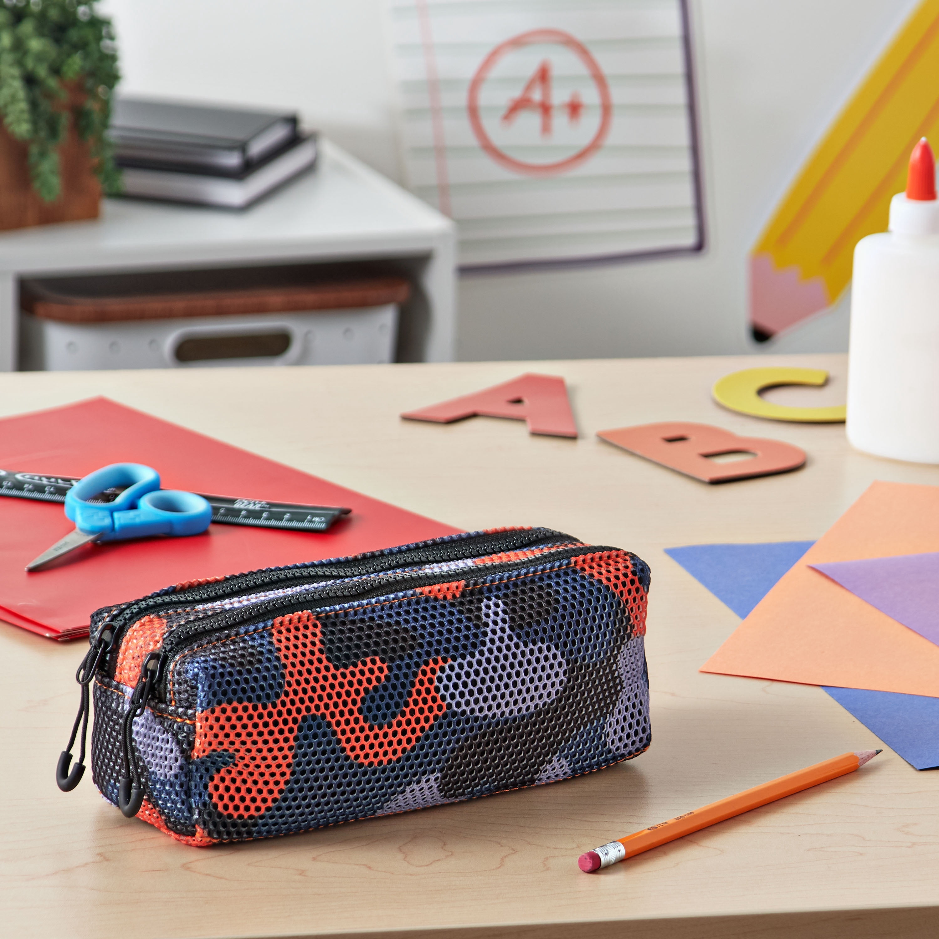 The Justice Rainbow Tie-Dye Pencil Pouch, with Multi-Color Glitter Confetti Accents is a fun accessory! It can be used for everything from pencils to paperclips. It makes a perfect money holder or cosmetic storage bag. A rainbow tie-dye design is printed on the front. The outside layer of the pouch contains rainbow glitter confetti. Just give the pouch a little shake and watch the glitter start dancing around.