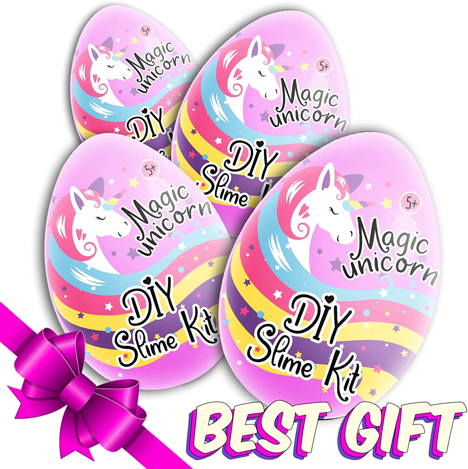 Laevo Unicorn Surprise Slime Egg Bundle (4pack Variety) – Slime Making Kit – Slime for Girls – Easter Eggs – Easter Egg DIY Slime Kits Great for Easter Baskets – Butter, Cloud, Glitter, Stardust Slime