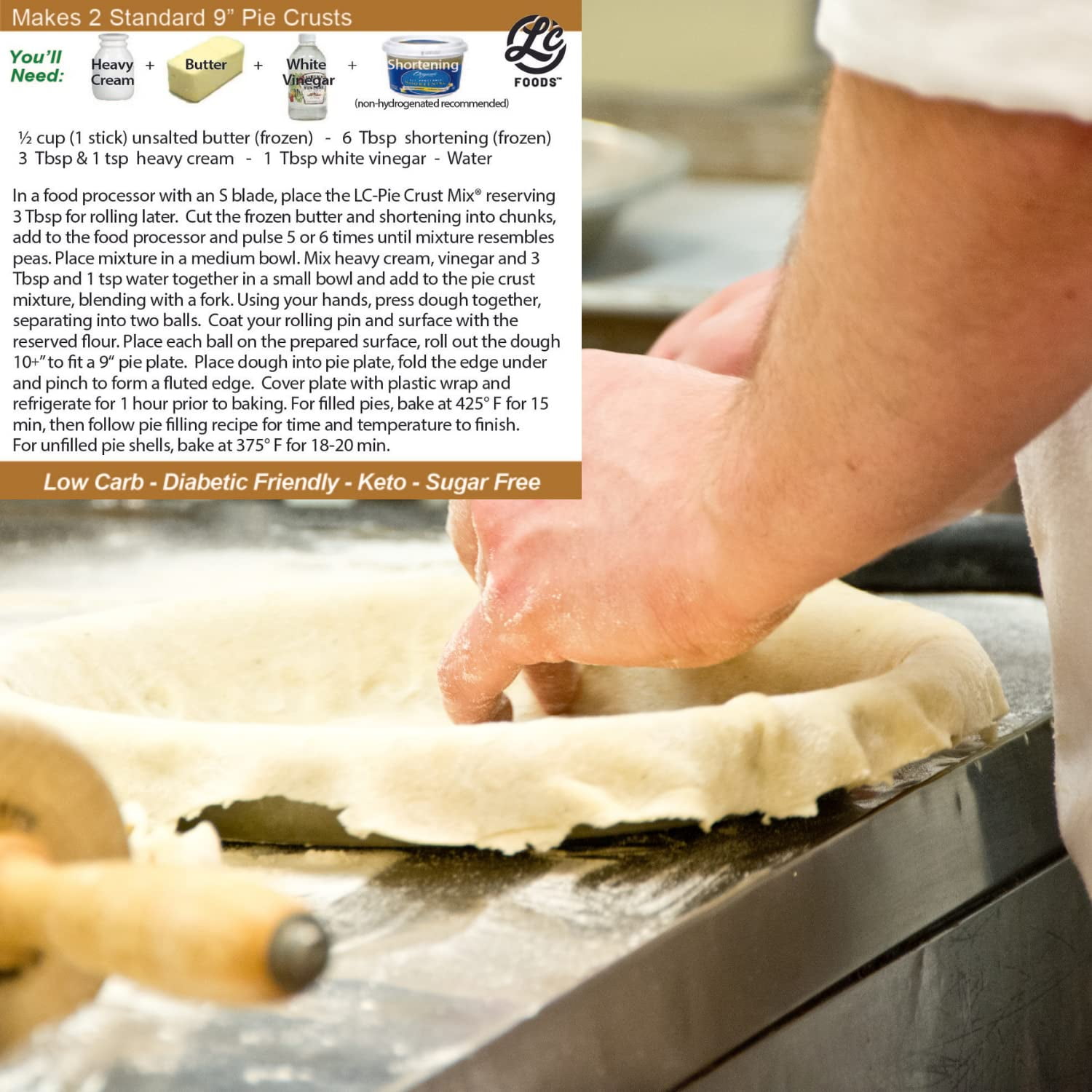 DELICIOUS LOW CARB PIE CRUST: LC Foods pie crust has authentic flavor, superior texture, is easy to make and every bite is delicious. We love giving people the option to still enjoy their favorite foods no matter what – that’s why we’ve made a pie crust mix that is so perfect and flaky you would never know it was sugar-free & low carb!