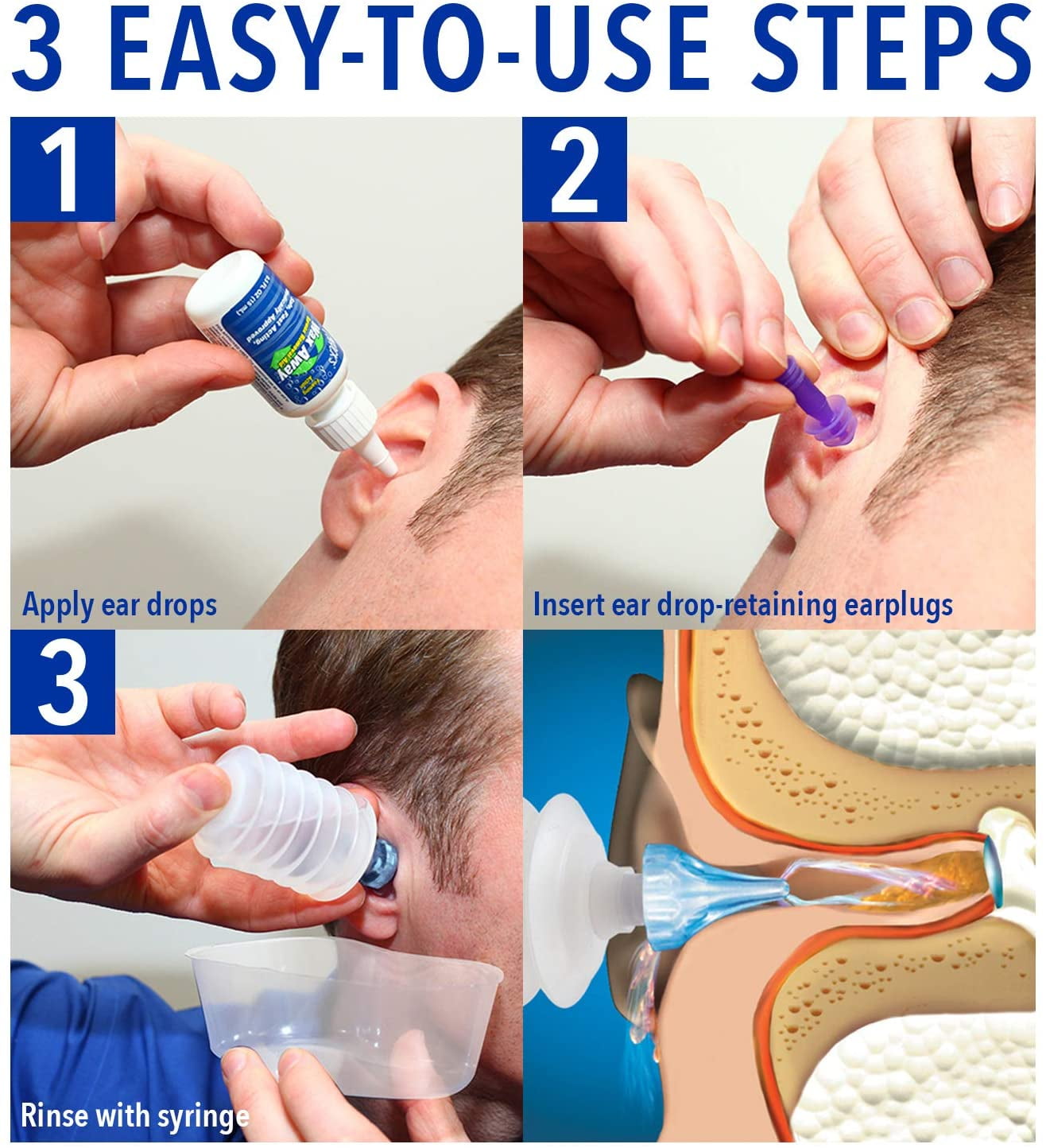 - Other Information: Avoid exposing Earwax Removal drops to excessive heat and sunlight. Ear drops foam on contact with earwax due to release of oxygen. There may be an associated ‘crackling’ sound. Keep cap on bottle when not in use. This system is designed for multiple treatments. The components are washable and reusable. Misc: Carbamide peroxide 6.5%. 2x faster treatment (Mack’s AquaBlock Earplugs (hold drops in both ears at the same time for faster treatment)). Safe & gentle. Foaming action. Maximum rinsing. New! Soft & gentle triple action rinse tip. No 1 doctor recommended earplug brand. For clean, clear ears. Bellow syringe with triple action rinse tip, drops, earplugs & rinse tub. Complete System Contents: Super soft rinse tip on bellow syringe. Foaming action earwax. Removal drops. Convenient rinse tub. Questions or comments? 586-427-7560 during business hours (Eastern Standard Time). A.