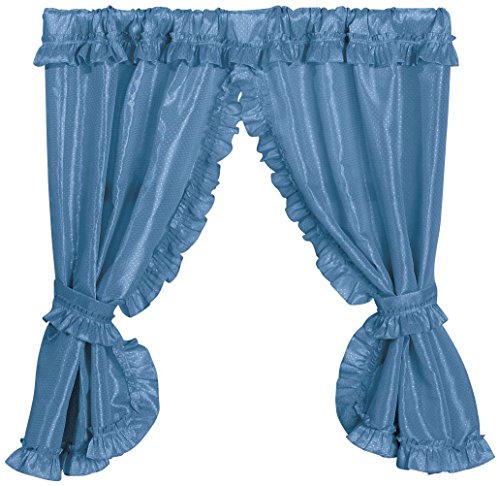 Star lite Deluxe Swag ruffled Bathroom Curtain will update and beautify your bath’s decor. Jacquard woven diamonds will shimmer like a reflection on a clear pool. Star lite is made from water resistant polyester fabric. Set includes two easy to attach tieback hooks, and two ruffled tiebacks. Coordinating ruffled shower curtain is also available.