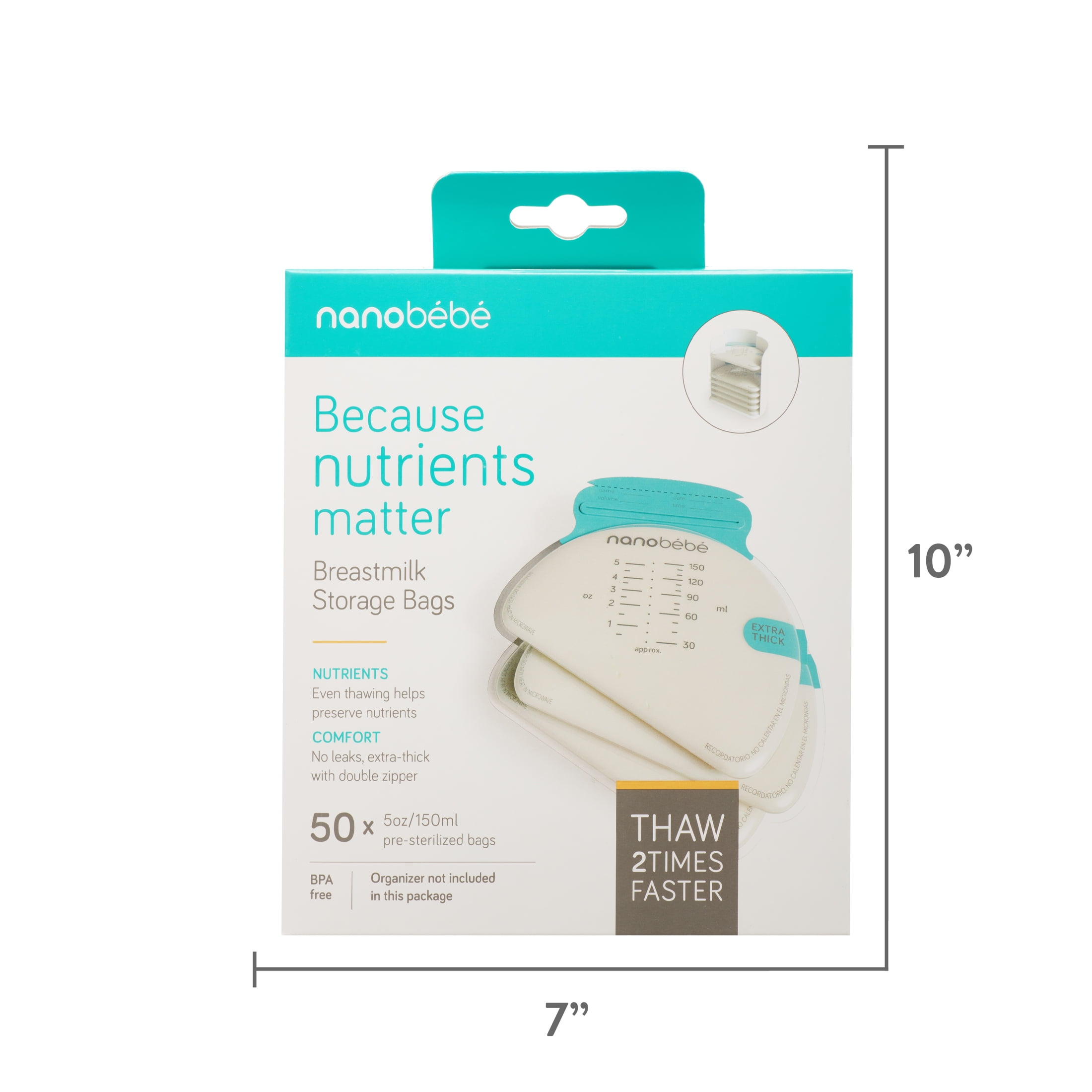 Nanobebe’s innovative and modern breastmilk storage bags are designed to prevent both spillage and spoilage, and most importantly, protect your precious milk. Designed to hold milk in a thin layer, they cool and thaw quickly, reducing bacterial growth risk during cooling, and preserving nutrients from the dangers of overheating. Nanobebe’s breastmilk storage bags are durable, leak-proof, made from extra-thick plastic, and feature a double-zipper closure. Store them in Nanobebe’s freezer organizer (sold separately), which enables hygienic and space-saving storage, and helps you to track pumping order by maintaining a first-in, first-out policy.