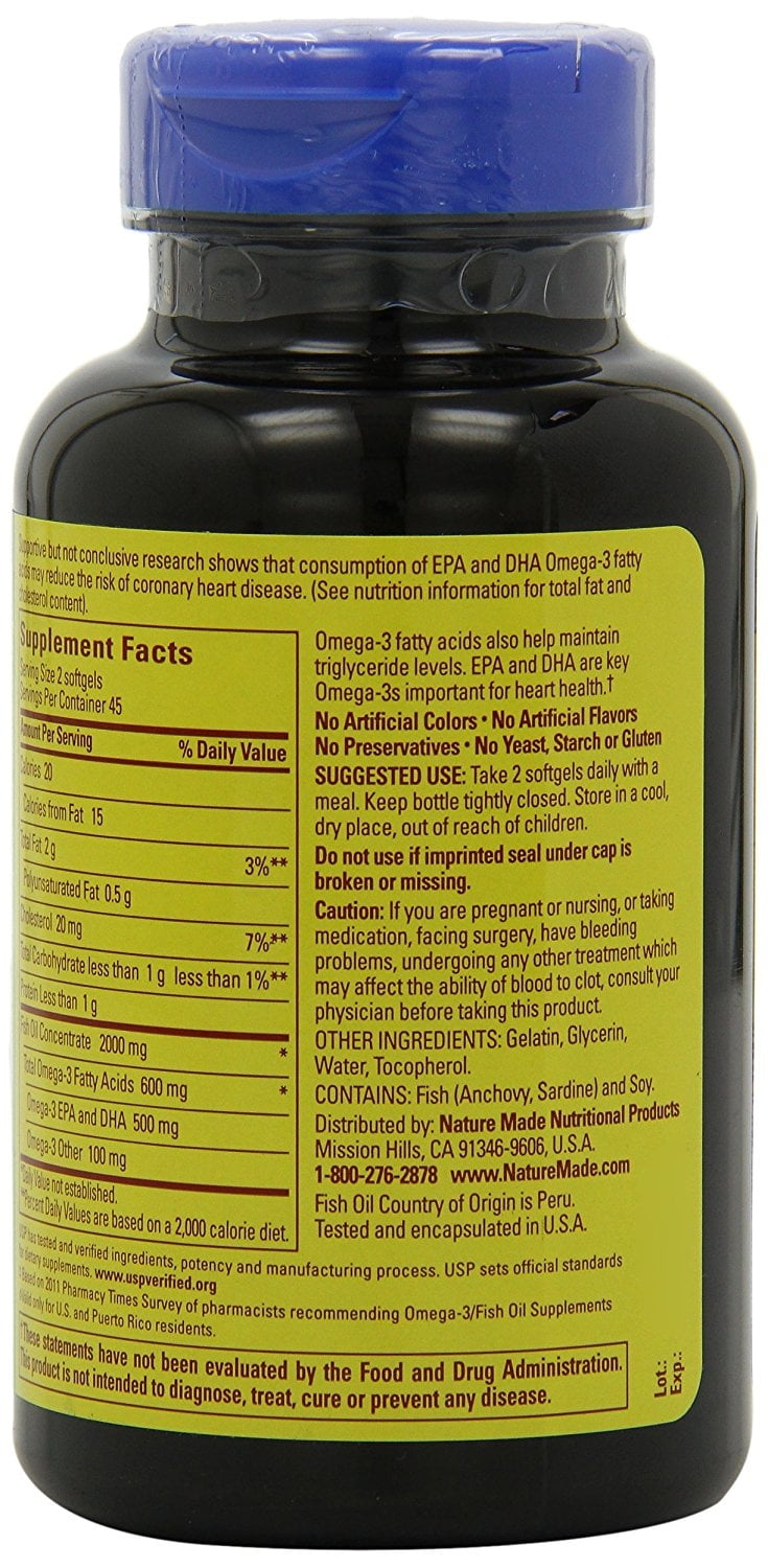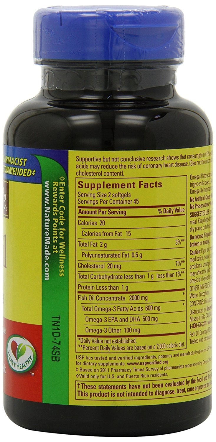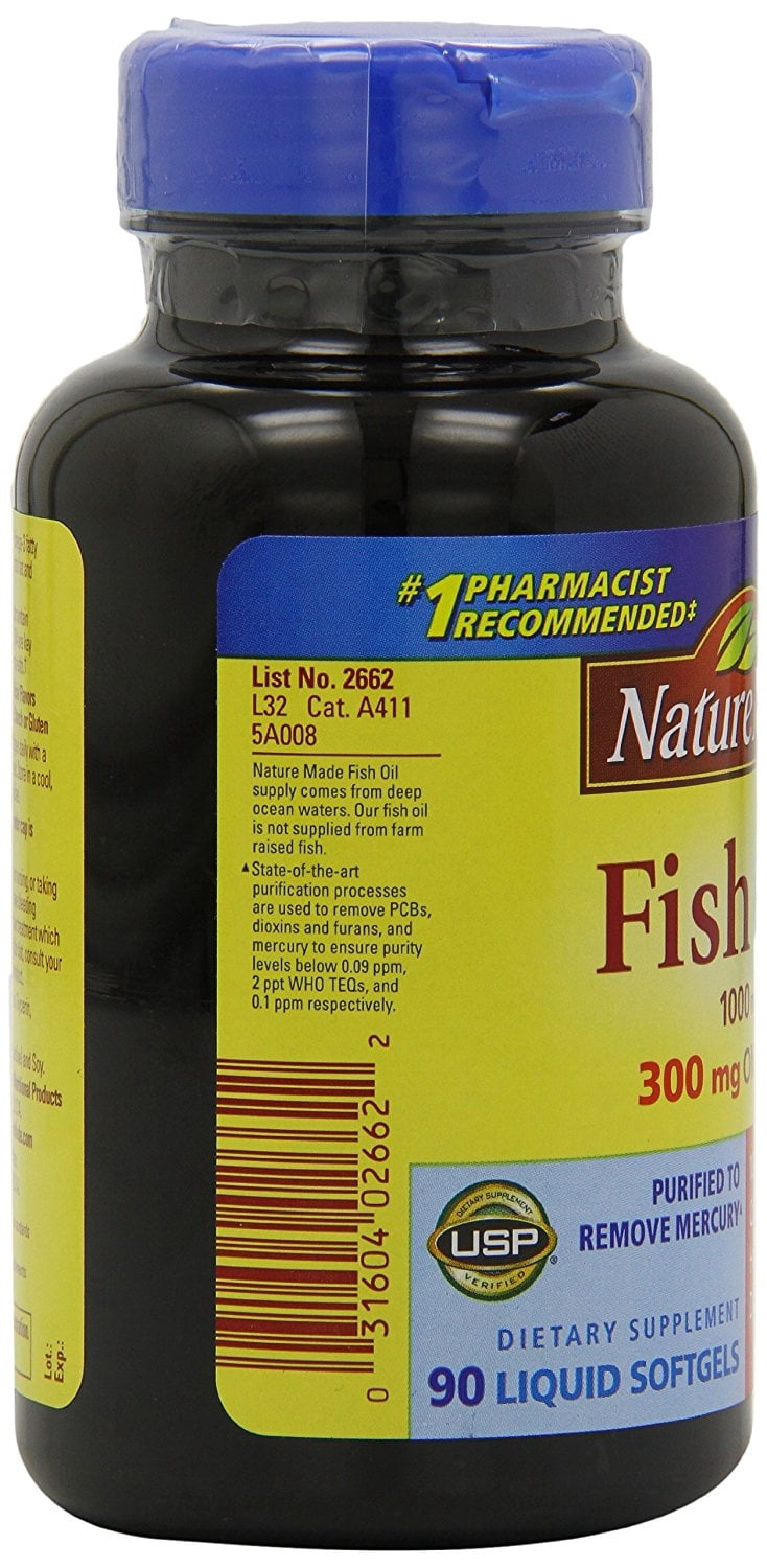 Product contains 1000 mg of Fish Oil Concentrate and 300 mg Omega-3|Purified to remove mercury|Nature Made Fish Oil supply only comes from deep ocean waters, not farm raised fish|No artificial colors; No artificial flavors; No artificial preservative
