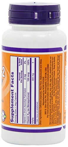 NOW Foods Vitamin K-2,100mcg, 100 caps (Pack of 2)