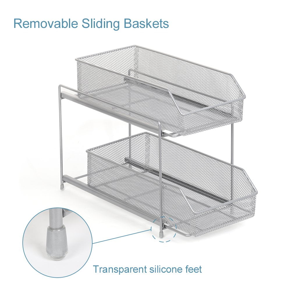 - Easy To Assemble: The sliding basket organizer is easy to install and disassemble. No drill, no power tools needed.