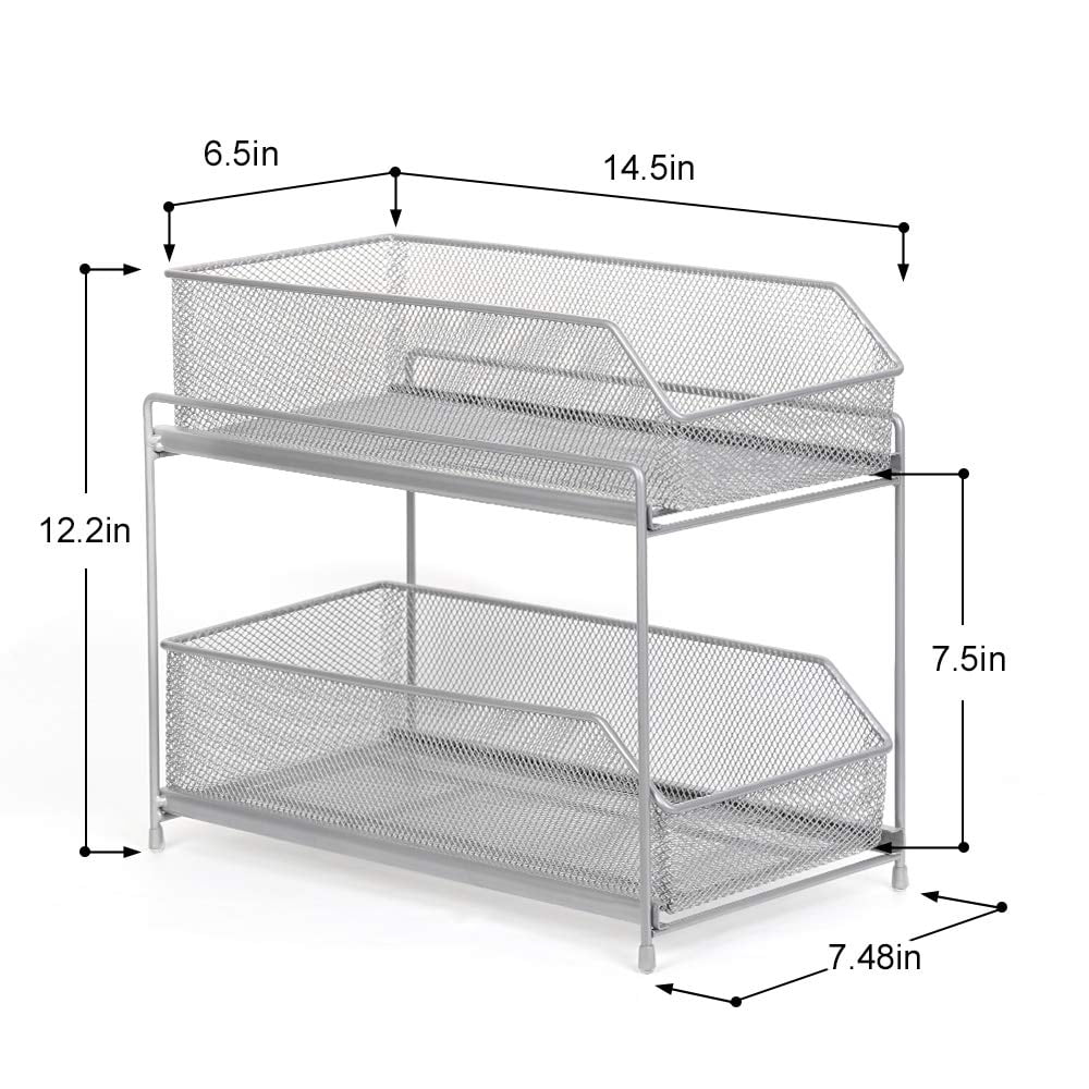 - Convenient Design: The Oumilen two-tier mesh basket organizers is designed for convenience and allows for large amounts of storage for such a small product.