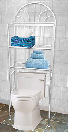 Perfect for smaller bathrooms, the Home Basics 3 Shelf Bathroom Space Saver makes use of unused space to provide additional storage space. This sturdy metal space saver fits over your toilet and features three shelves. Its wire tube frame features a decorative arched top and a bright white finish that works with almost any bathroom décor.