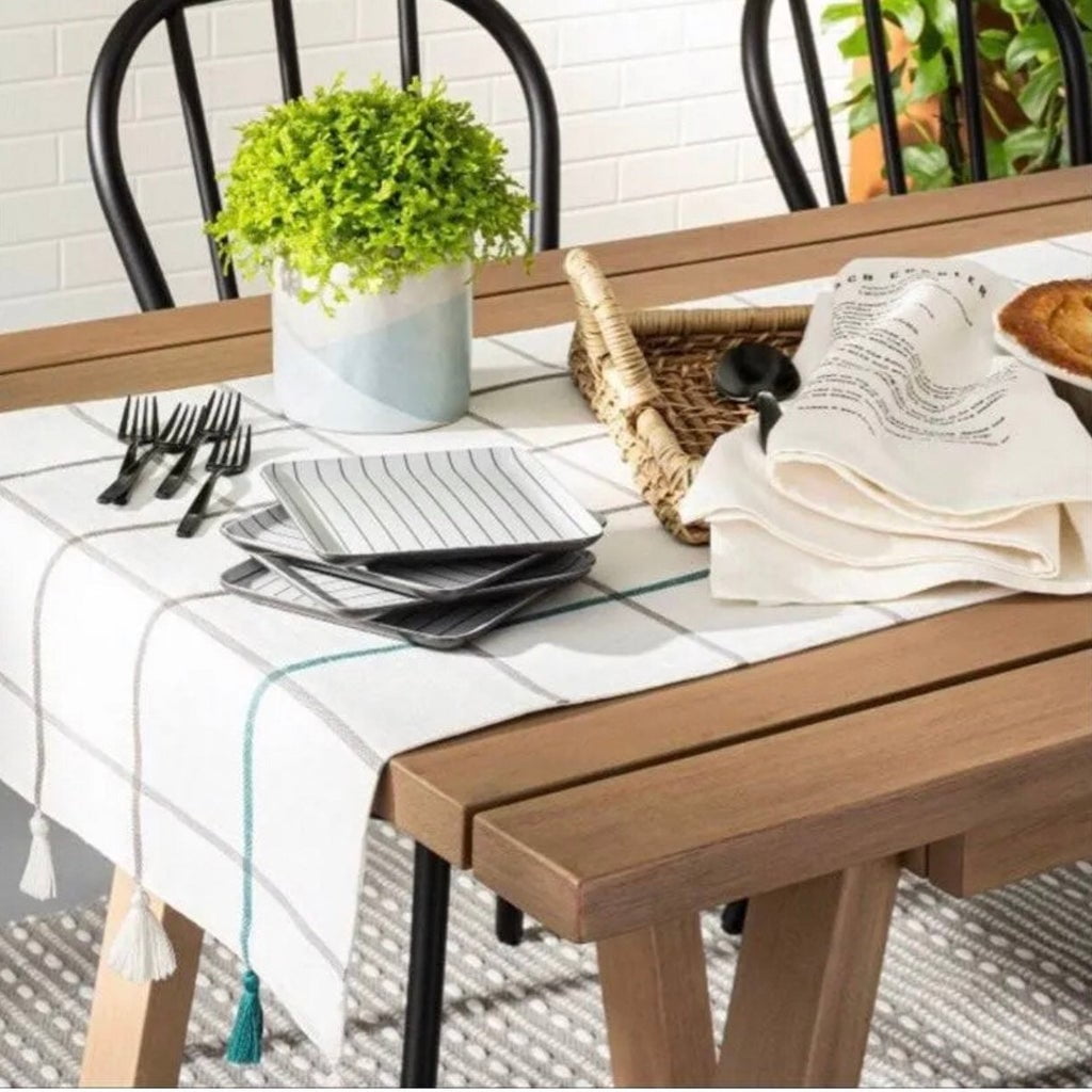Oversized Windowpane Plaid Tassel Table Runner Teal/Gray Hearth & Hand Magnolia 20in x 90in