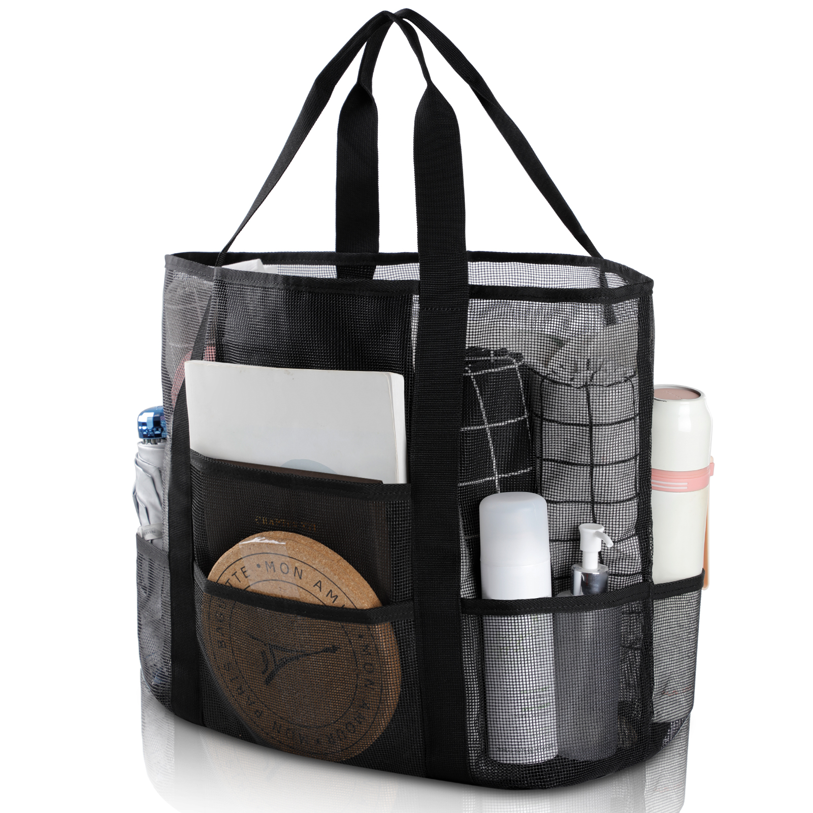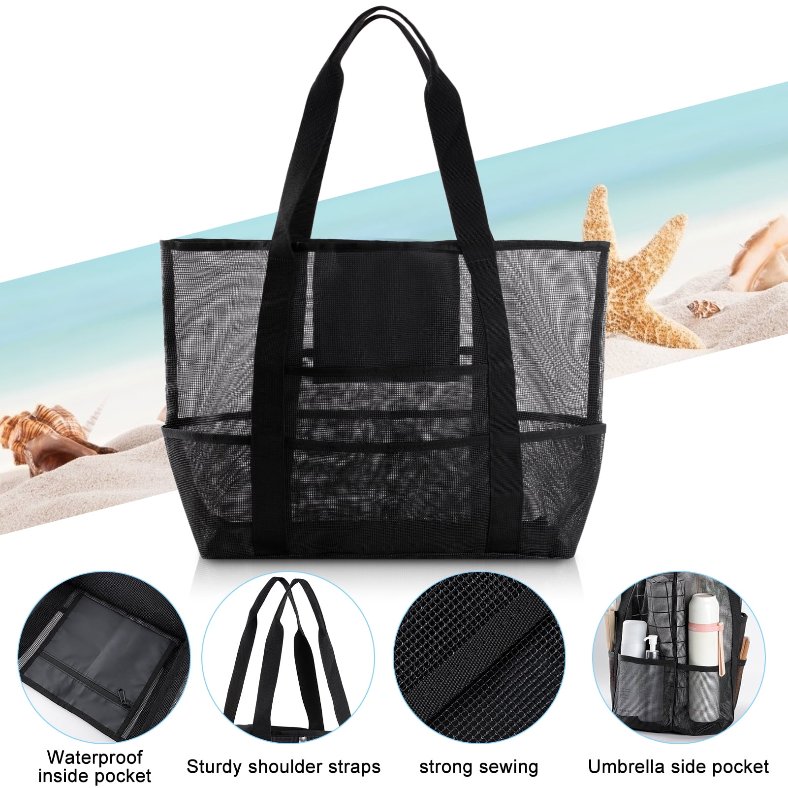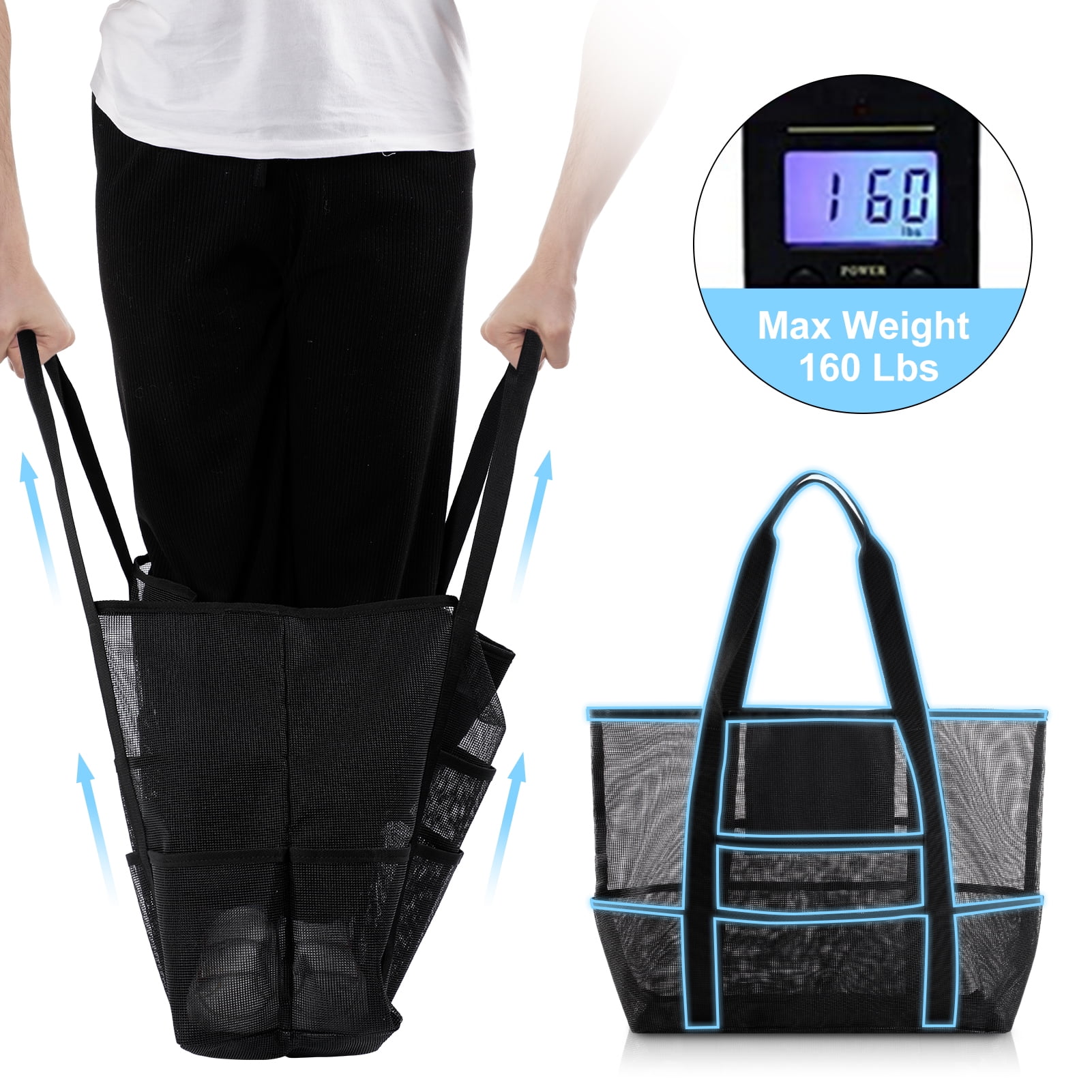- 【High Quality Mesh Material】:The Mesh Beach Tote Bags is made of high quality mesh Material, Reinforced shoulder straps allow you to easily carry a large number of items; and our beach tote bag can hold up to 160 pounds