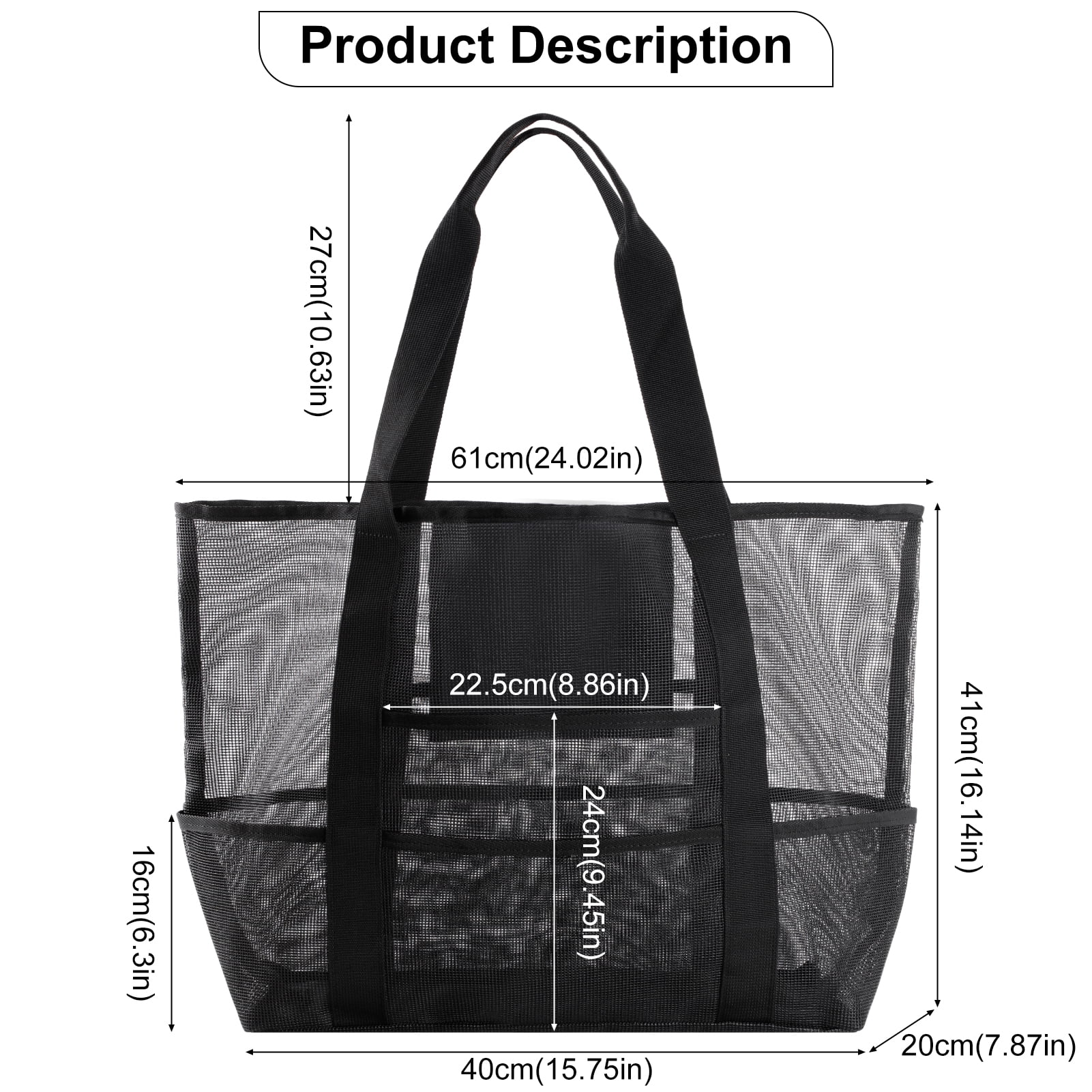 Mesh beach bag size: L*W*H: 41*20*40cm(16.14*7.87*15.75in)