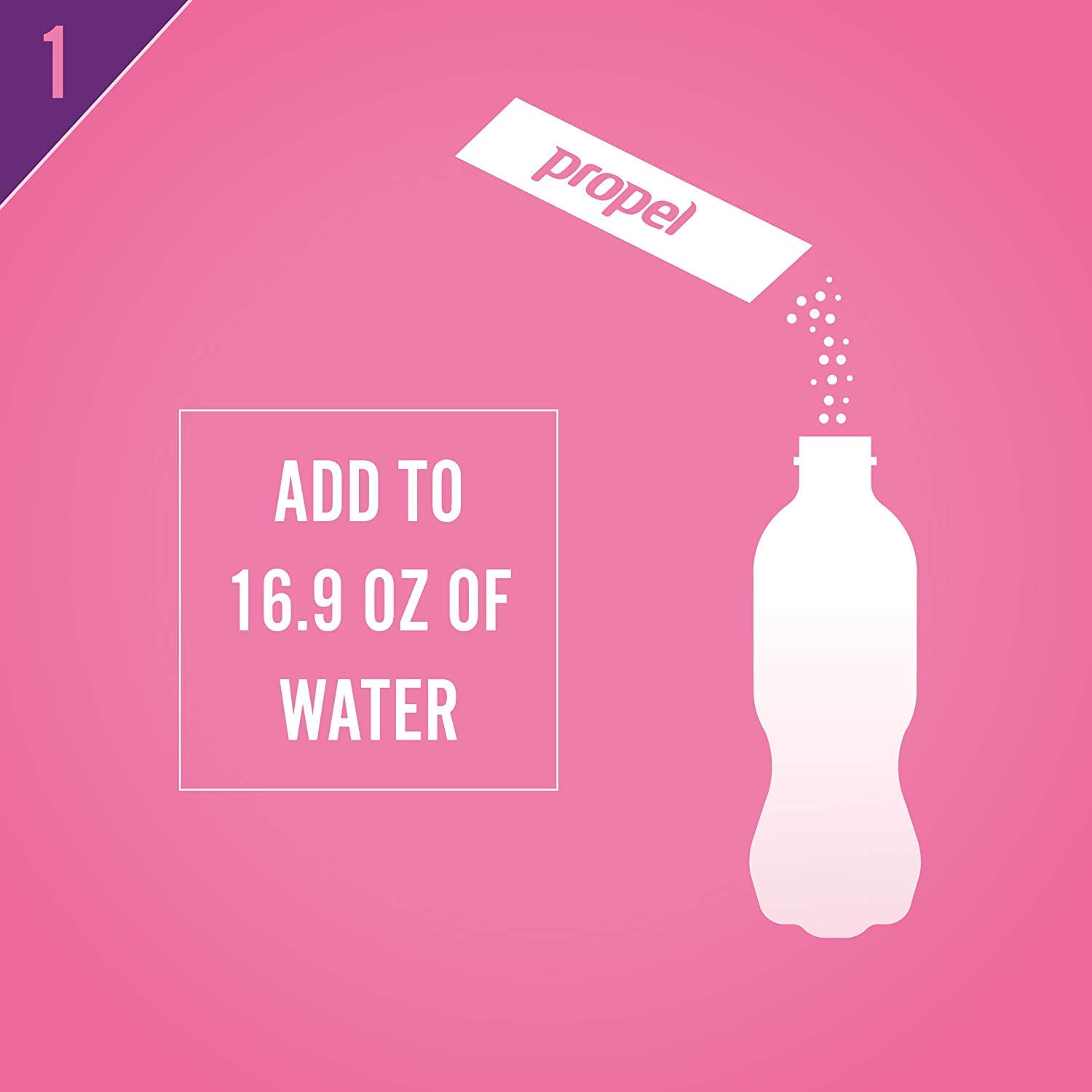 Product details Give your workout a boost of fruit flavor. Each Propel provides electrolytes, vitamin B, and antioxidant vitamins C and E, so you can hydrate, replenish and get your best workout without adding calories. With Propel Powder, just add water to put back the electrolytes that you lost in sweat. Just add water Contains antioxidant vitamins C and E Zero calories Watermelon flavor 1 Box with 10 packetsProduct details Give your workout a boost of fruit flavor. Each Propel provides electrolytes, vitamin B, and antioxidant vitamins C and E, so you can hydrate, replenish and get your best workout without adding calories. With Propel Powder, just add water to put back the electrolytes that you lost i