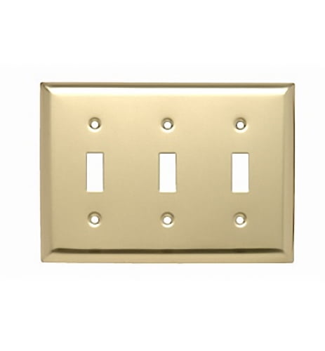 P&S Polished Brass Smooth Metal 3-Gang Toggle Switch Wallplate Cover SB3-PB