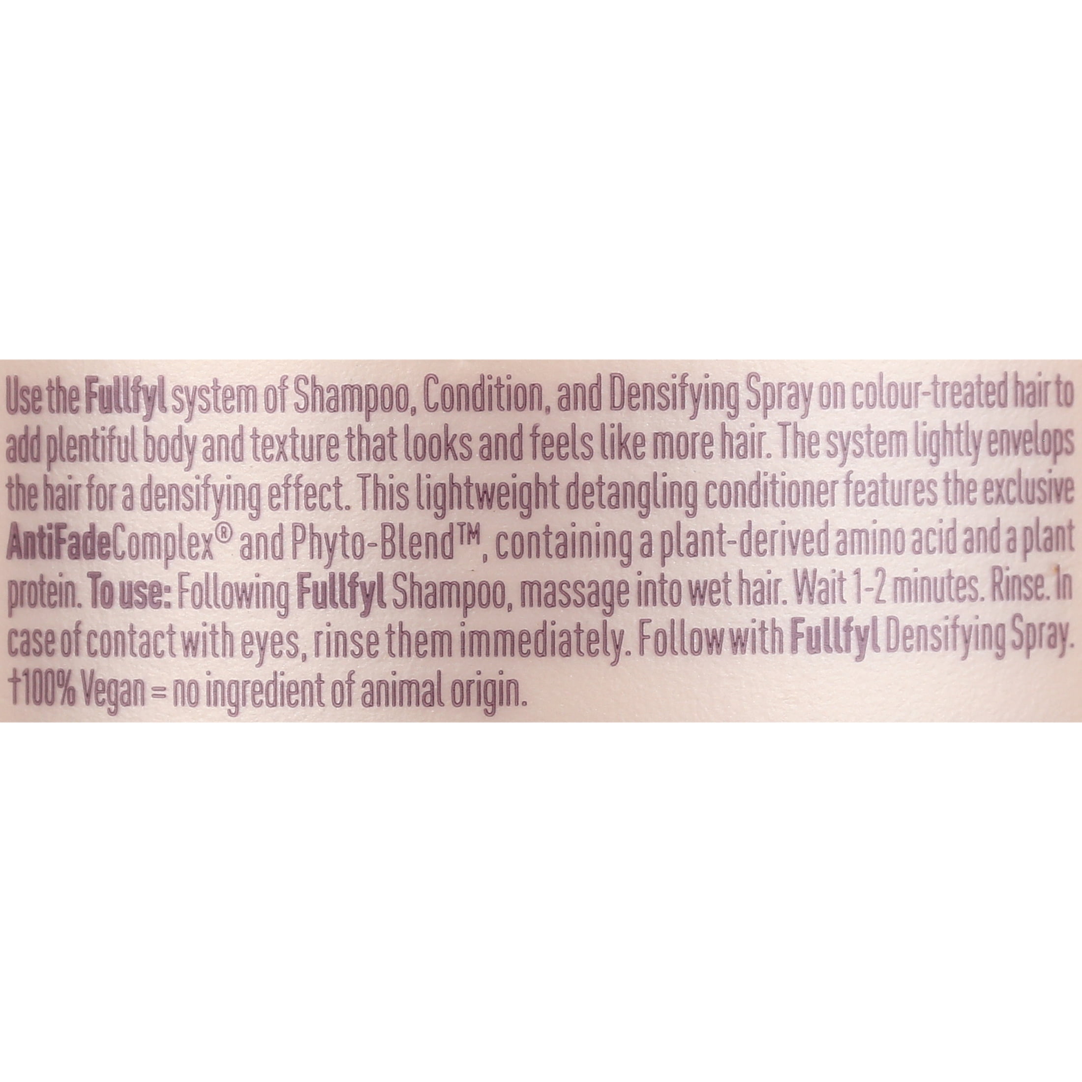 What it is: Use the Fullfyl system of Shampoo, Condition, and Densifying Spray on color-treated hair to add plentiful body and texture that looks and feels like more hair. The system lightly envelops the hair for a densifying effect. This lightweight detangling conditioner features the exclusive AntiFadeComplex and Phyto-Blend, containing a plant-derived amino acid and a plant protein. Concentrated densifying conditioner; No added silicones for lightweight detangling; Formulated with plant-based ingredients; 100% Vegan; Product Options Available are as follows: Option: 1.7 oz – Pureology Fullfyl Condition; Option: 8.5 oz – Pureology Fullfyl Condition; Option: 33.8 oz – Pureology Fullfyl Condition;Pureology Fullfyl Conditioner 8.5oz 250ml