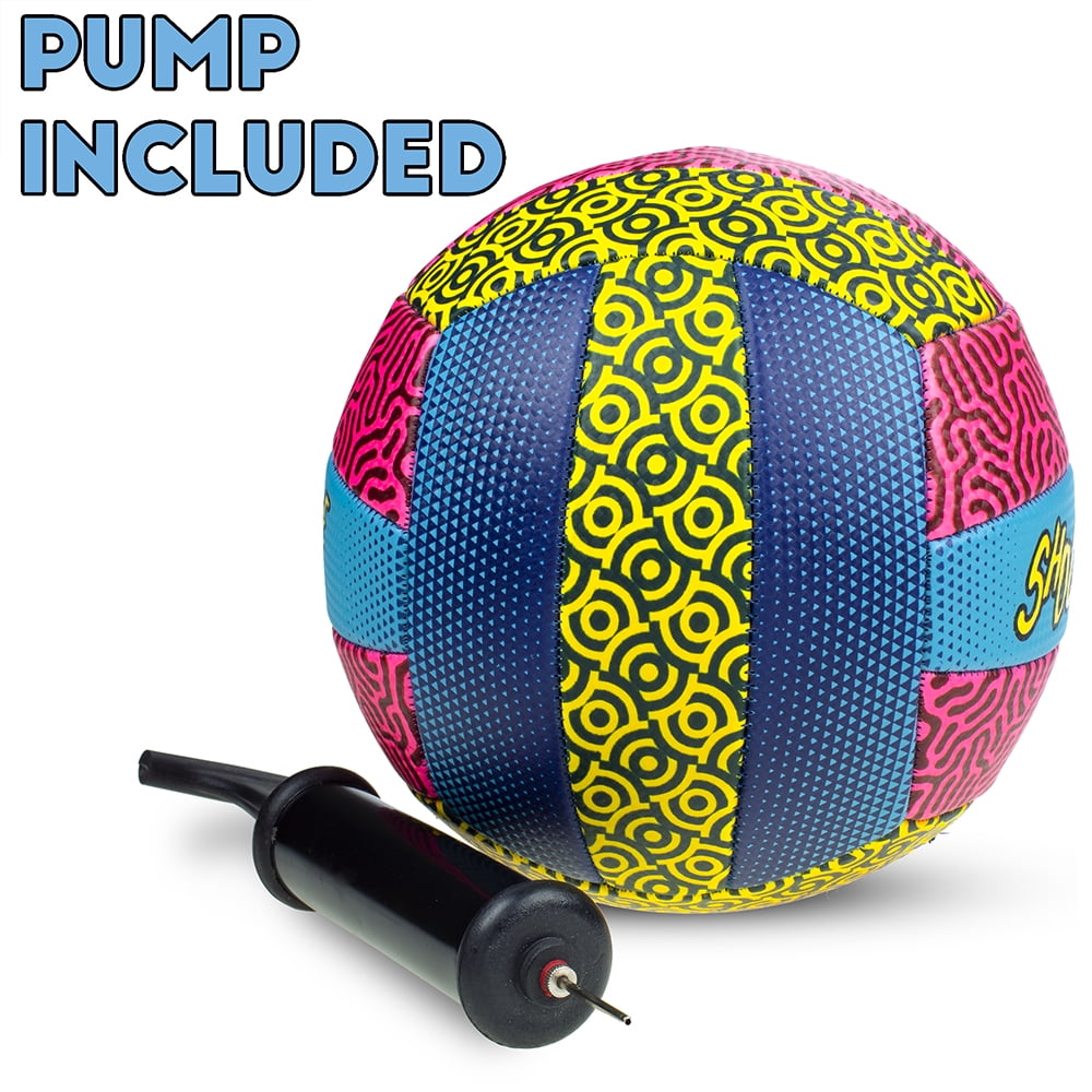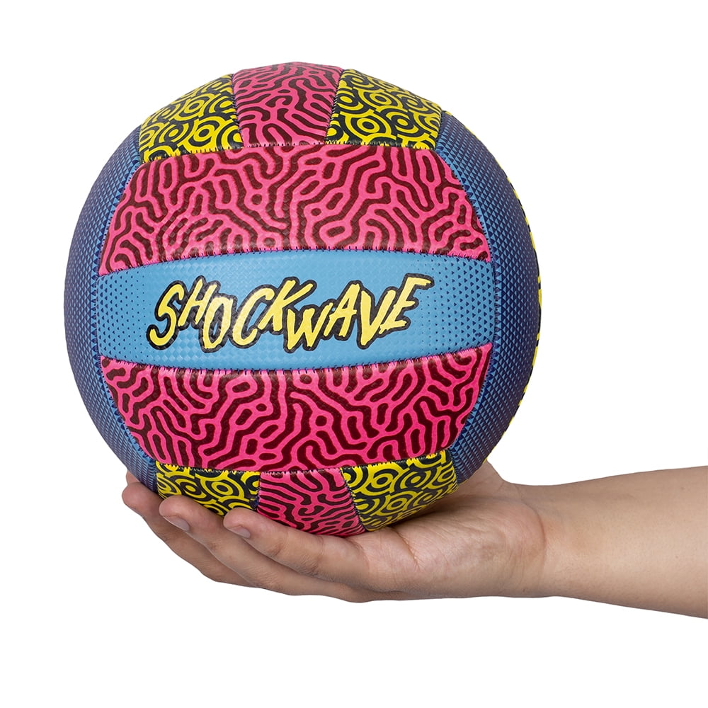 NEON FEVER Get ready to set, serve, and spike with this Shockwave Beach Volleyball from Crown Sporting Goods. This ball is made to stand out from the crowd with its eye catching and retro aesthetic. Our funky neon design evokes the artistic concepts from the dazzling clothes of the 80s and early 90s with multiple patterns and bright colors. The distinct patterns really help in outdoor settings when the sun’s out, so you won’t lose the ball when it’s sailing through the air. It also stands out in a crowd in case you are playing on a crowded beach. The ball is ideal for outdoor or indoor settings making it one of the most versatile volleyballs around. Add some personality to your pickup games with this bold ball!