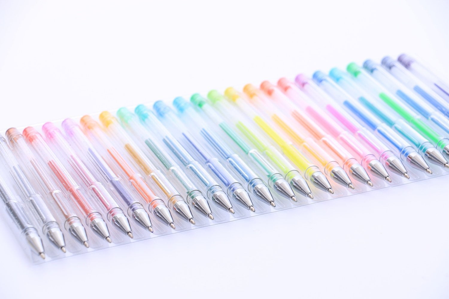 - It includes 9 color types. Abundant colors with so many vibrant inks, you cannot imagine! We have glitter, neon glitter, metallic, neon, pastel, swirl, standard, unique, and the magical. The last two color types are the ones you cannot get from any other brands of gel pen set!
