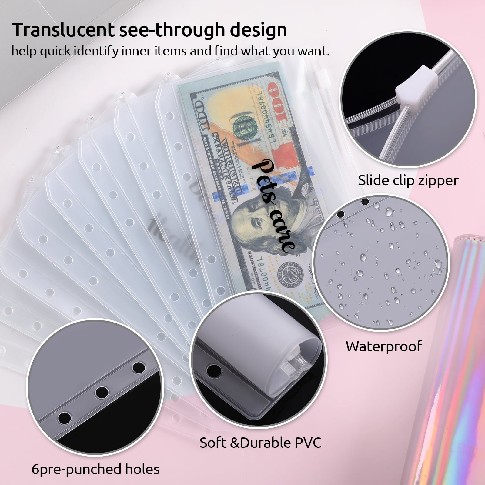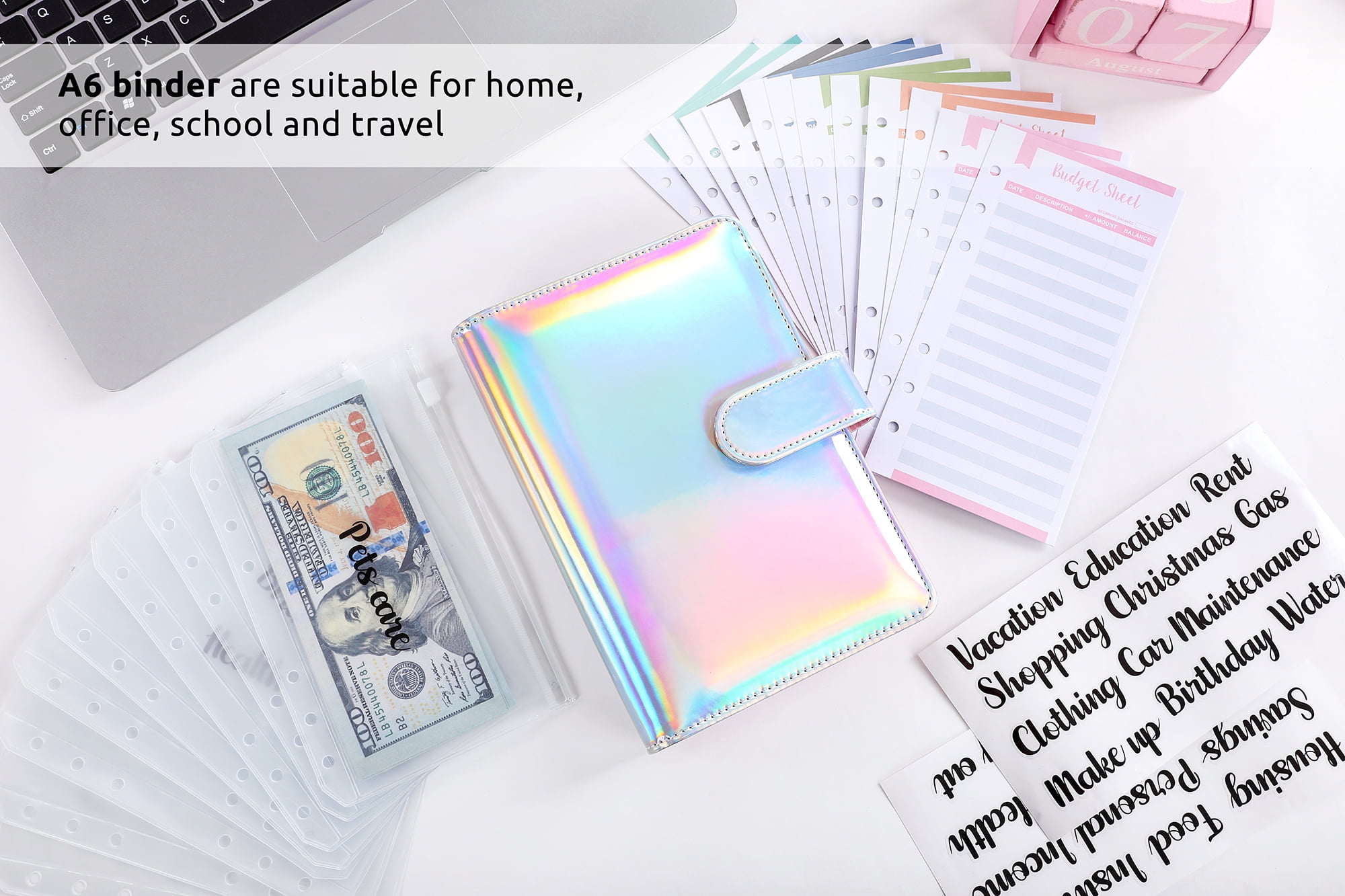 SKYDUE Budget Binder with Cash Envelopes & Expense Budget Sheets,Money Saving Binder,Cash Envelopes for Budgeting and Saving Money,Laser Silver