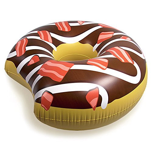This sweet maple and bacon donut swimming pool float from Sol Coastal is over 4 feet wide! So recline in sweet maple icing and salty bacon style. Made of long-lasting vinyl, it has been dyed with bright, bold colors with lots of great details, like glazed maple icing and long, crispy strips of bacon. And just in case of any accidents, we’ve included a free emergency patch kit. Don’t let your fun deflate at your next summer beach party!