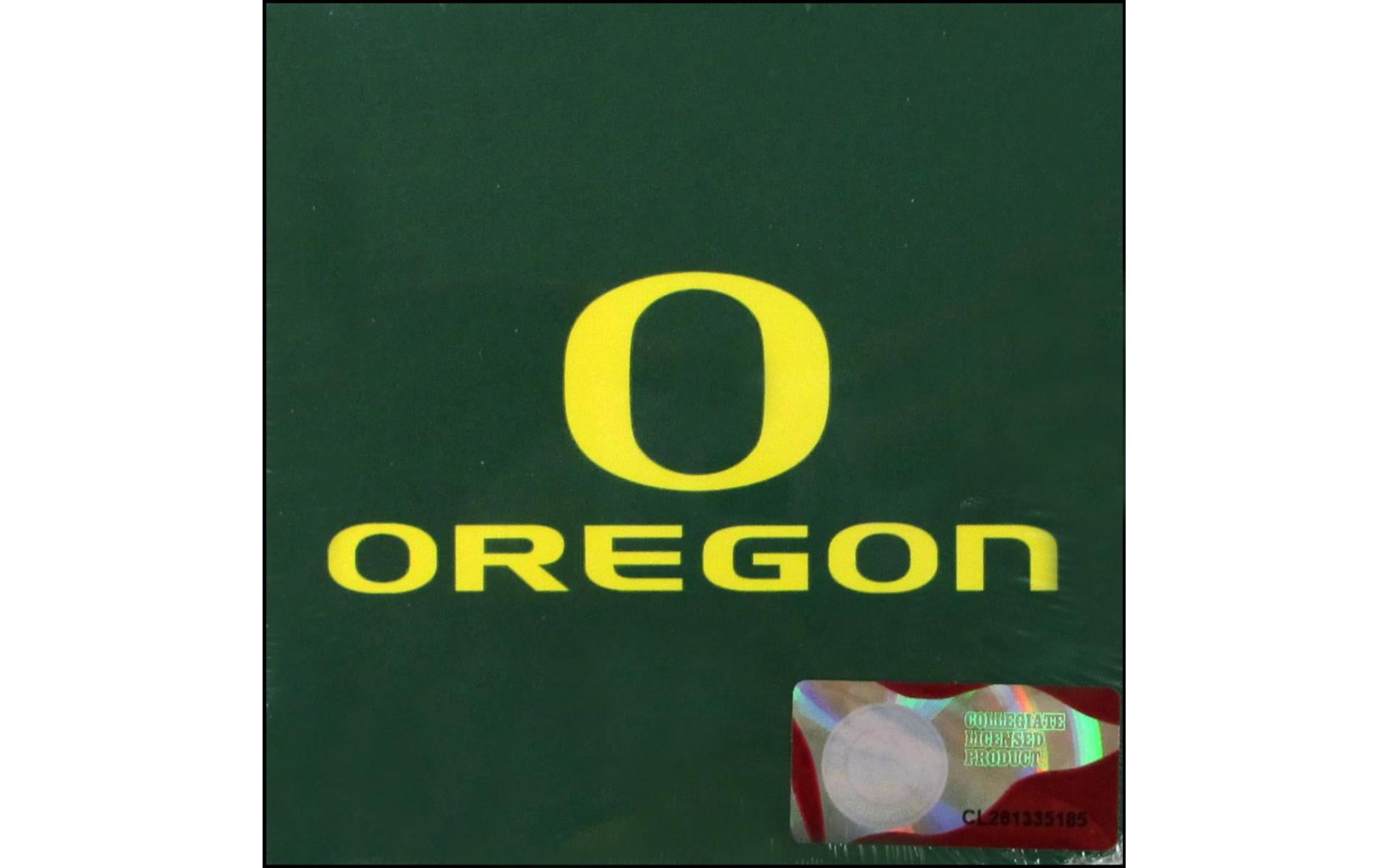 Sports Solution Logo Card Sets give you "cards" that have been printed with your favorite college’s licensed logos or mascots. Use in paper crafts, scrapbooking, card making, as gift tags, or party decorations. Oregon 6pc- 4"x 4" cards, 2 each of 3 styles include; Dark Green background with Bright Yellow "O" and OREGON in same Yellow below, a Bright Yellow background with a large "O" in Dark Green, and a Dark Green background with an arched OREGON and an "O" below, both in Bright Yellow. Also includes 1 bonus card with a checkerboard pattern in the school’s colors.Sports Solution Logo Card Set Oregon 6pc