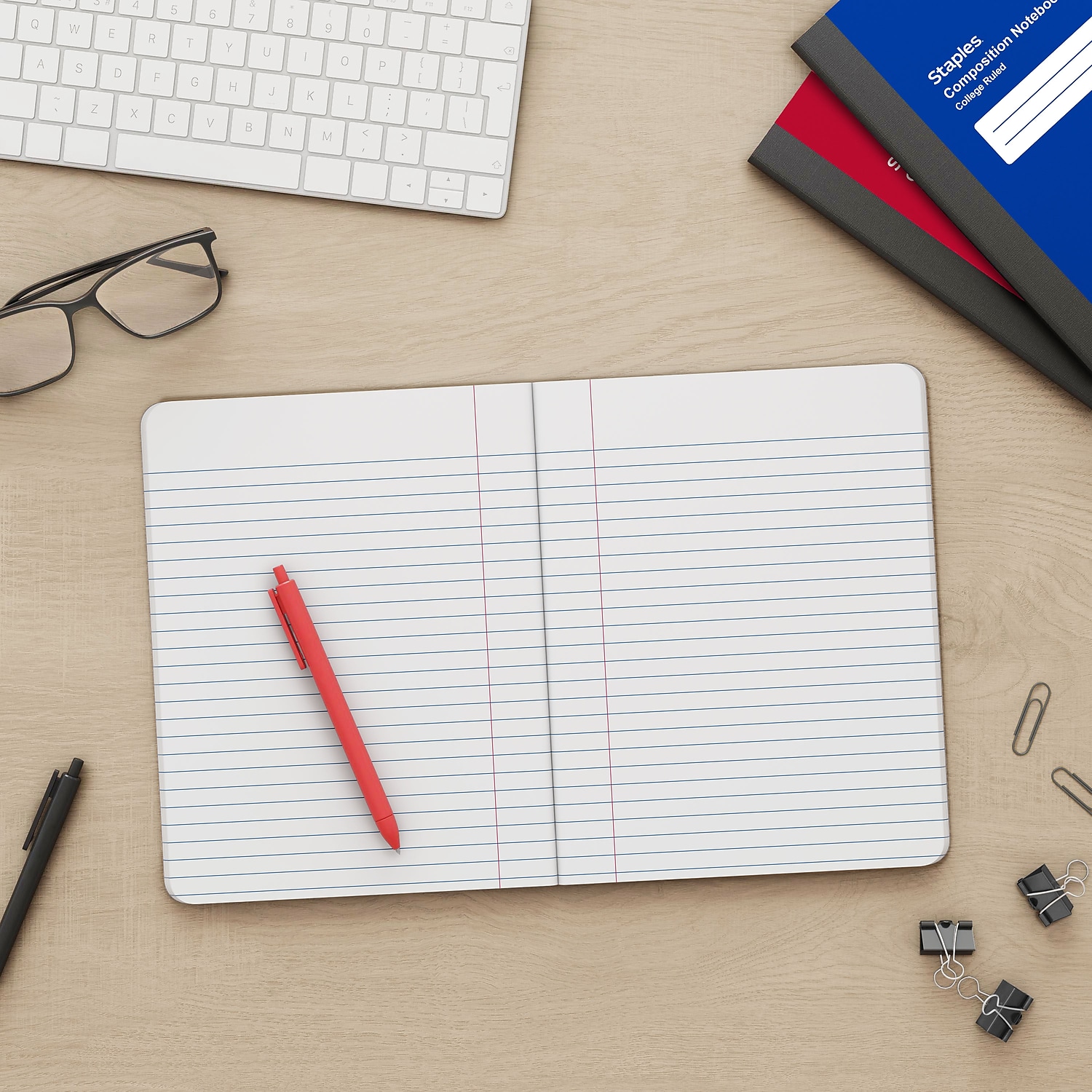 Keep notes organized with this Staples 7.5 x 9.75-inch green poly composition notebook.Record important concepts, business ideas and test prep information in this poly composition notebook. The college-ruled pages ensure handwriting stays neat and organized, while the smooth permanent binding resists snagging. With its green hue, this Staples 7.5 x 9.75-inch green poly composition notebook is perfect for color-coding your class materials or managing separate projects for work. Composition notebook is great for permanent note-taking in class or at home. 80 sheets of college-ruled paper for efficient use of space. Green poly cover. Casebound construction is strong and durable. Sold as 1 Each.