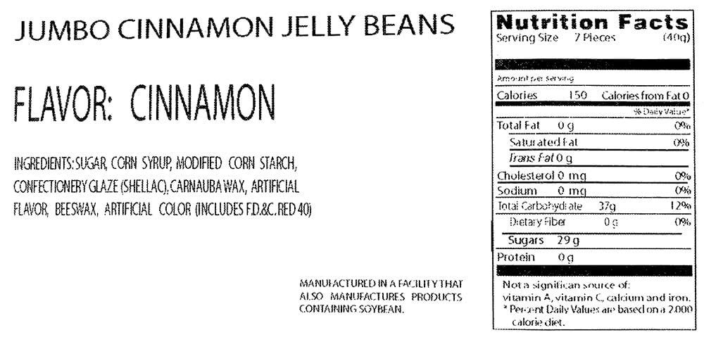 - Enjoy the taste of spicy cinnamon in every one of these jumbo-sized jelly beans! Candy Size: 1 inch.