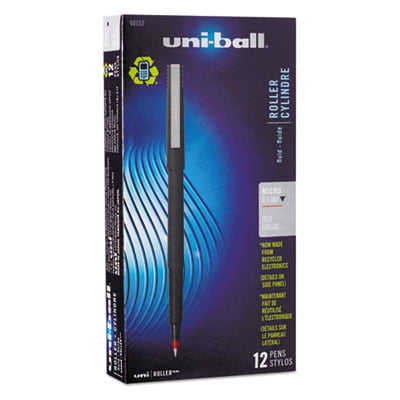 Rollerball pen fans have long appreciated this true classic. Writing as smooth as a fountain pen, but without the mess, it’s been a favorite for decades! uni Super Ink, a pigment-based formula containing particles that form an indelible bond in paper that cant be broken…ever, protects against water, fading and fraud. In all ways, it’s a pen you can rely on! Features an attractive matte finish and a durable metal clip. Pen Style: Stick; Pen Type: Roller Ball Pen; Refillable (Yes/No): No; Pen Point Size Type: Micro.uni-ball Stick Roller Ball Pen, Micro 0.5mm, Red Ink, Black Matte Barrel, Dozen