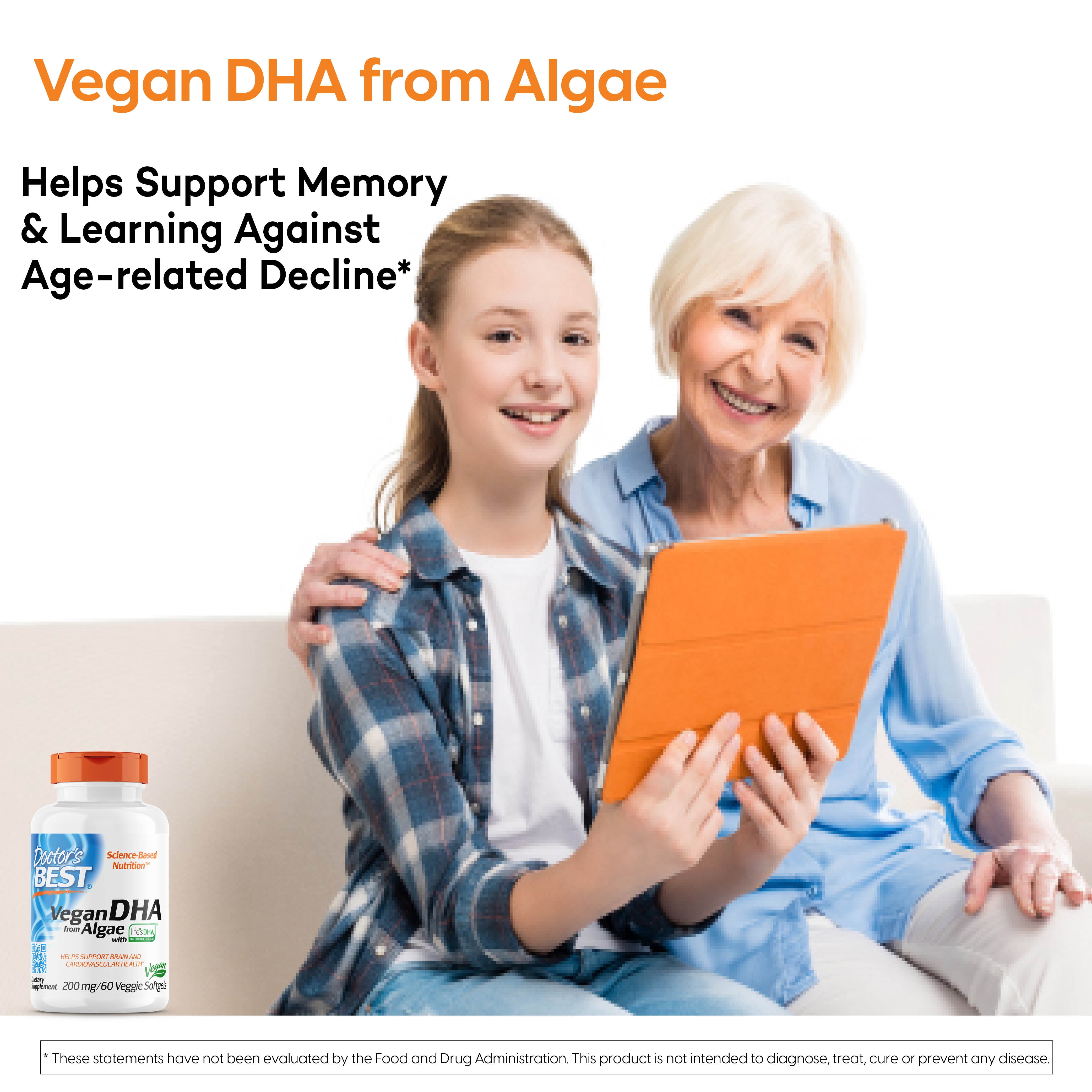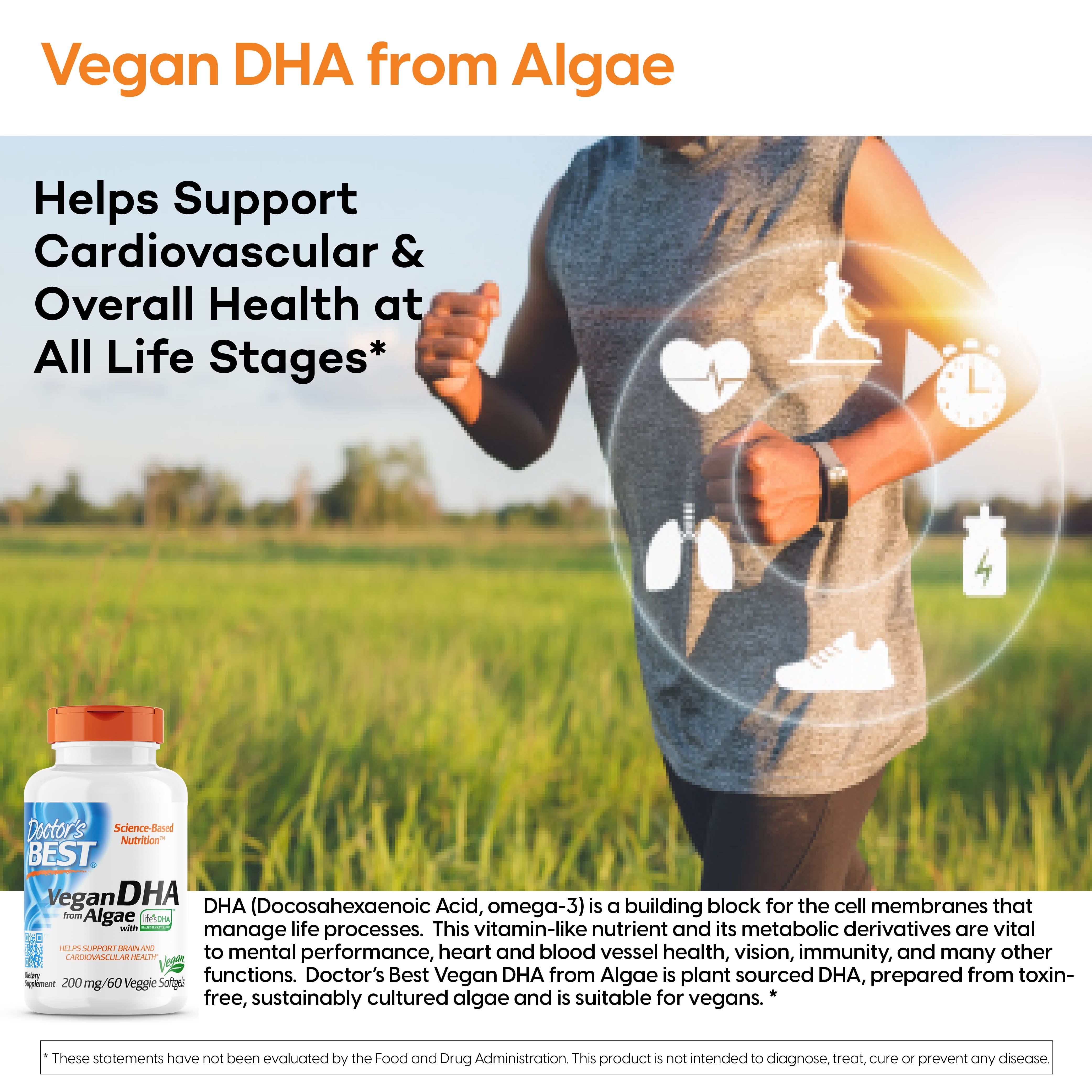 - Doctor’s Best Vegan DHA from Algae 200mg, 60 Veggie Softgels: