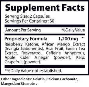 - Made with high-quality supporting ingredients, including African mango, green tea extract, apple cider vinegar, caffeine, grape seed extract and kelp